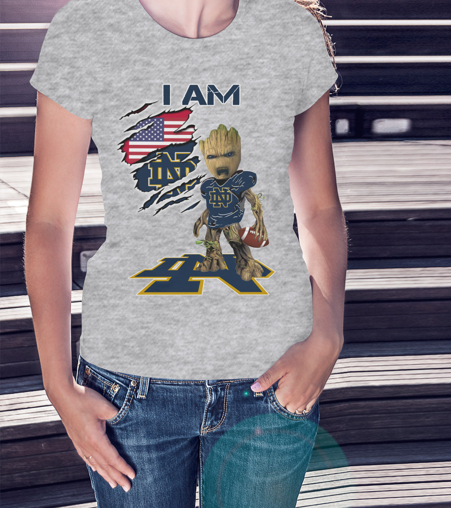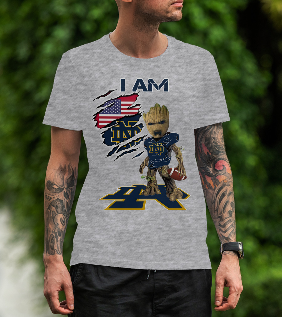 I Am Notre Dame Baby Groot American Flag Football T-Shirt