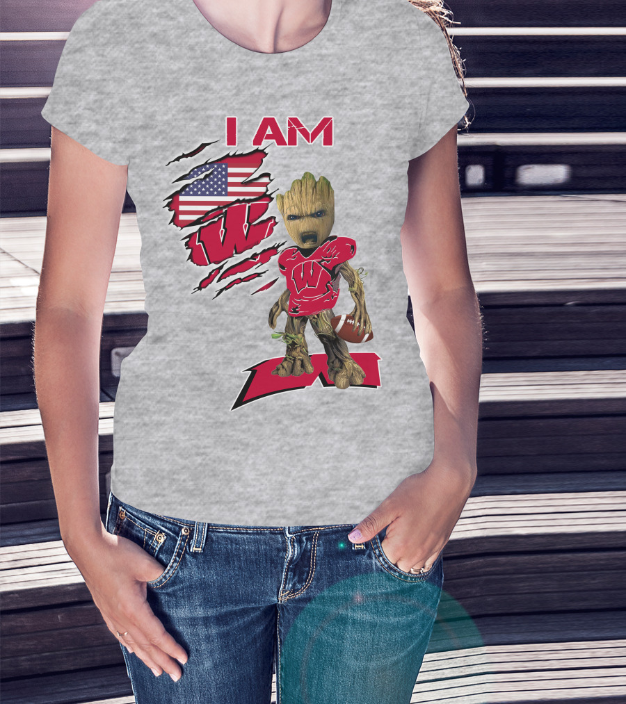 I Am Wisconsin Baby Groot Football W Logo American Flag T-Shirt