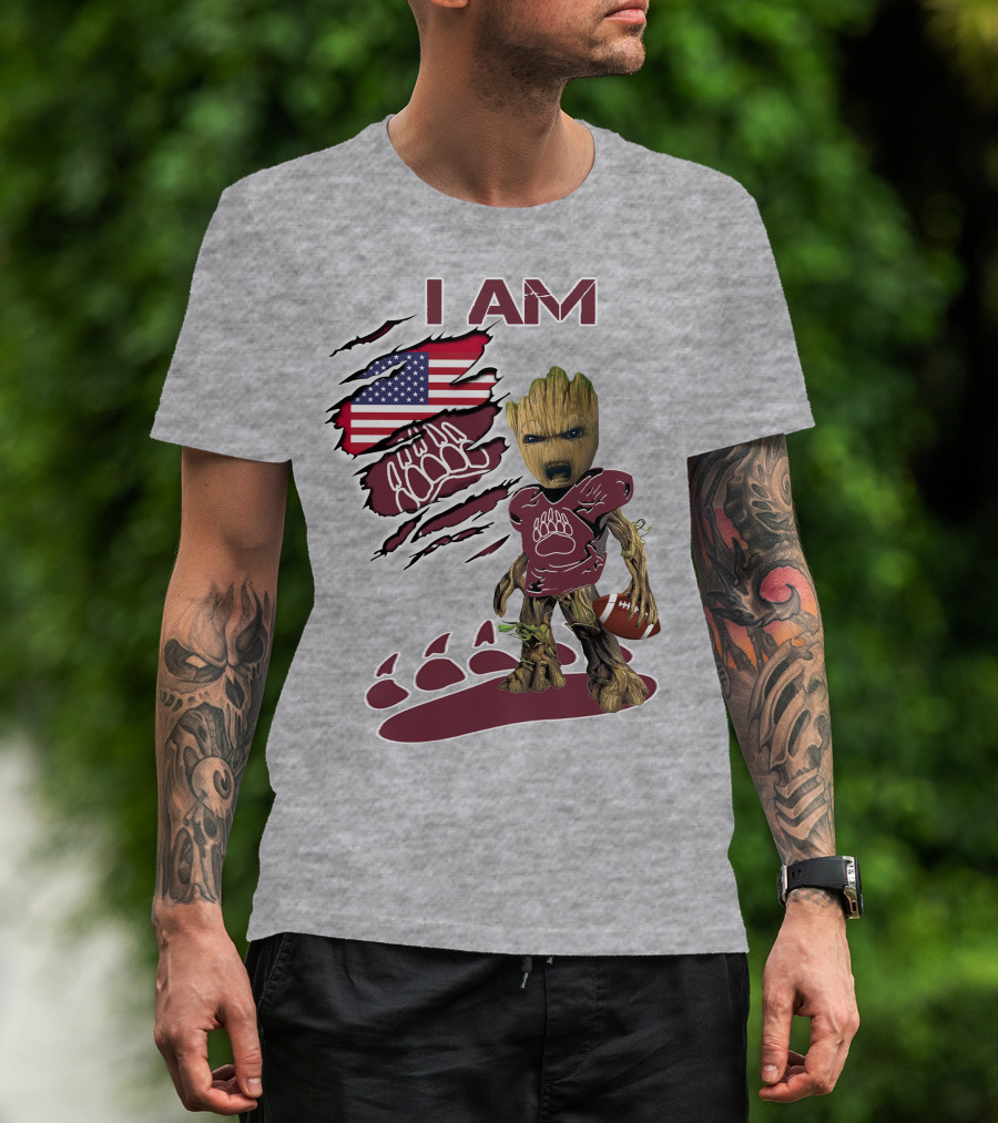 I Am Montana Baby Groot Football Bear American Flag T-Shirt