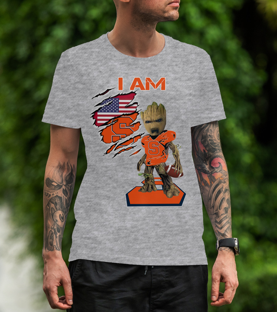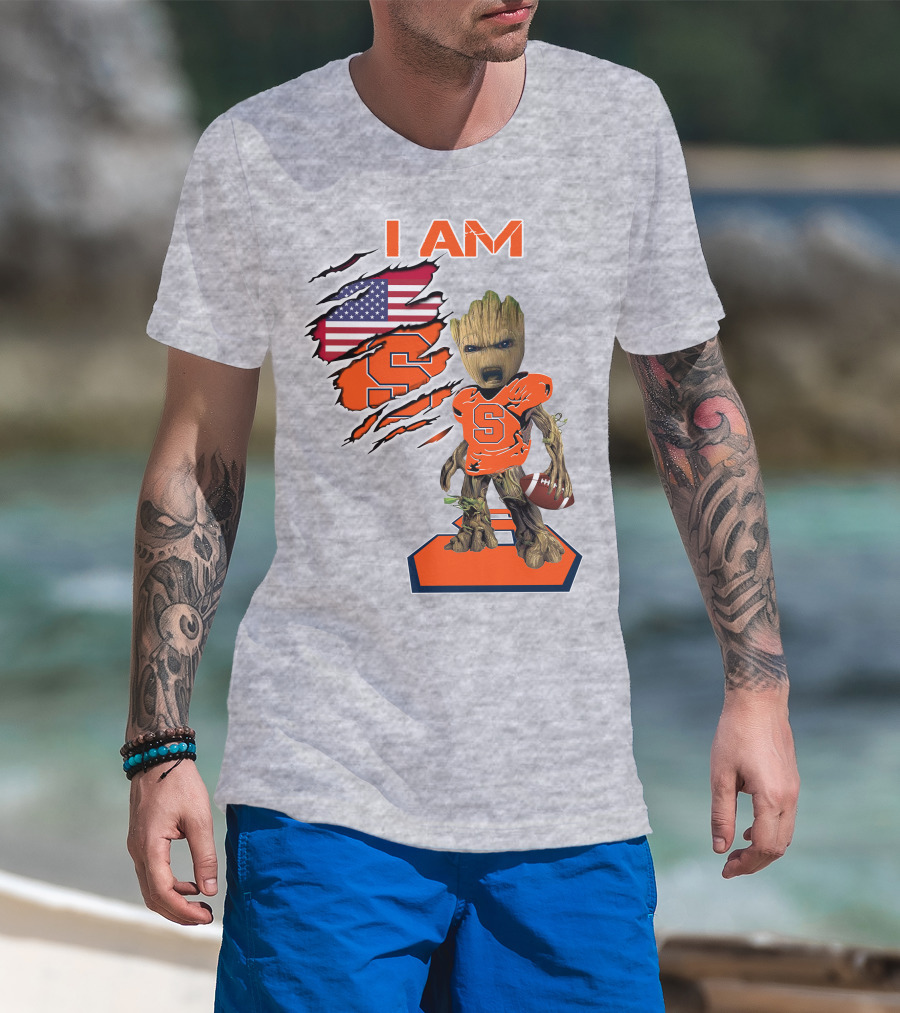 I Am Syracuse Baby Groot American Football Player With Flag And Orange S T-Shirt