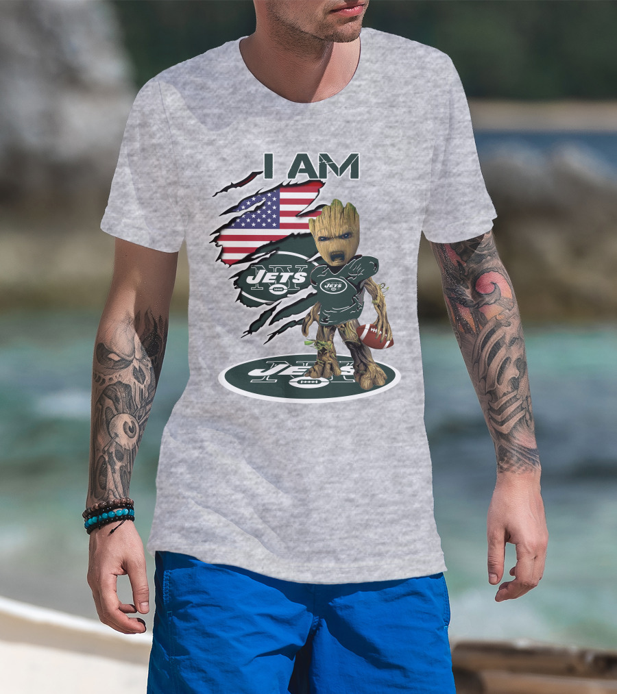 I Am Jets Baby Groot American Flag Football Fan T-Shirt