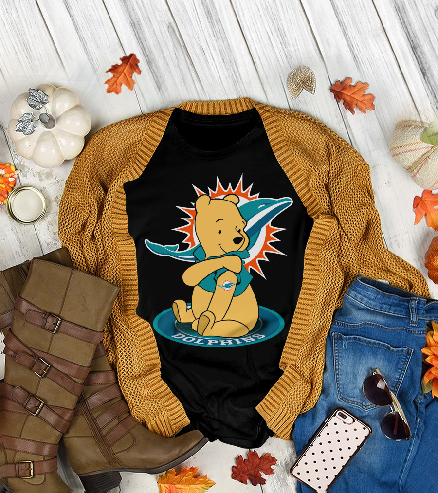 The Winnie Pooh Miami Dolphins T-shirt is designed for everyday wear and a consistent fit. Fabric is pre-shrunk ring-spun cotton with durable stitching. See the size chart below for exact measurements.