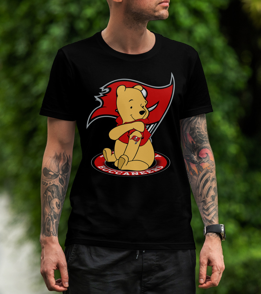 The Pooh Buccaneers Tampa Bay T-shirt is designed for everyday wear and a consistent fit. Fabric is pre-shrunk ring-spun cotton with durable stitching. See the size chart below for exact measurements.