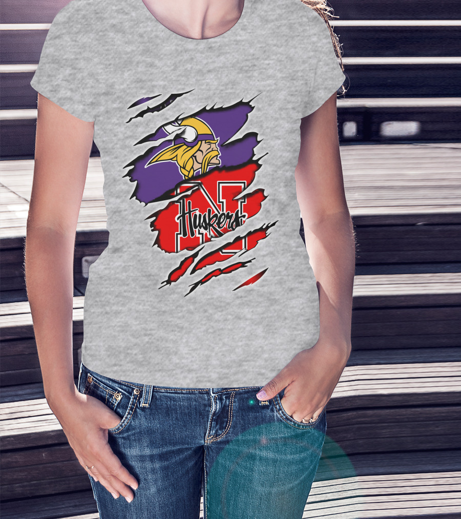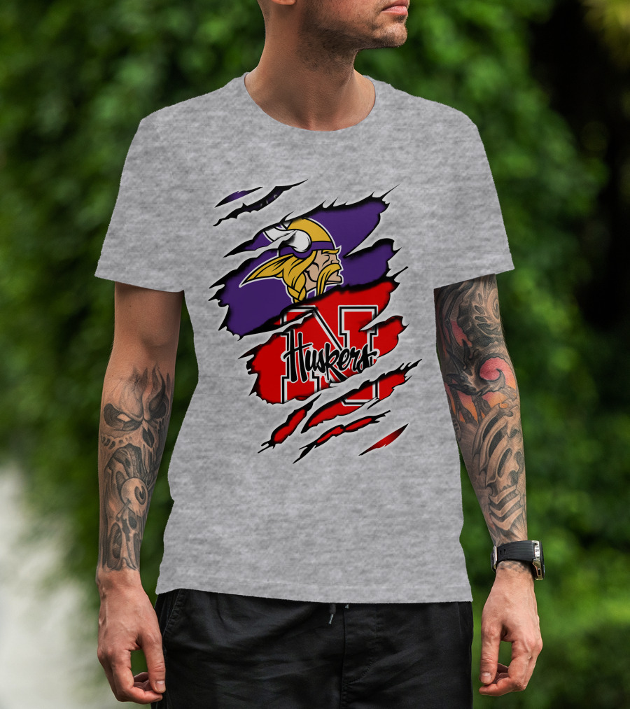 Vikings Huskers Claw Marks Logo Fusion T-Shirt
