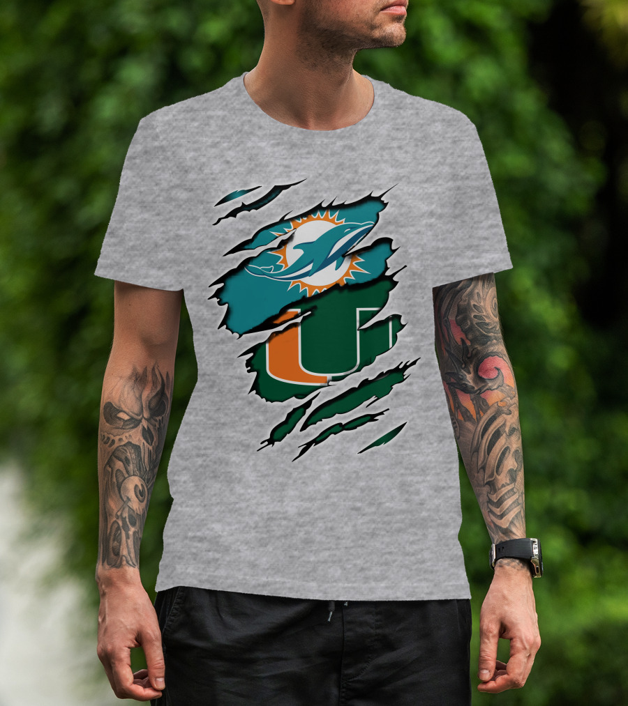 Miami Dolphins Miami Hurricanes Claw Marks Fusion T-Shirt