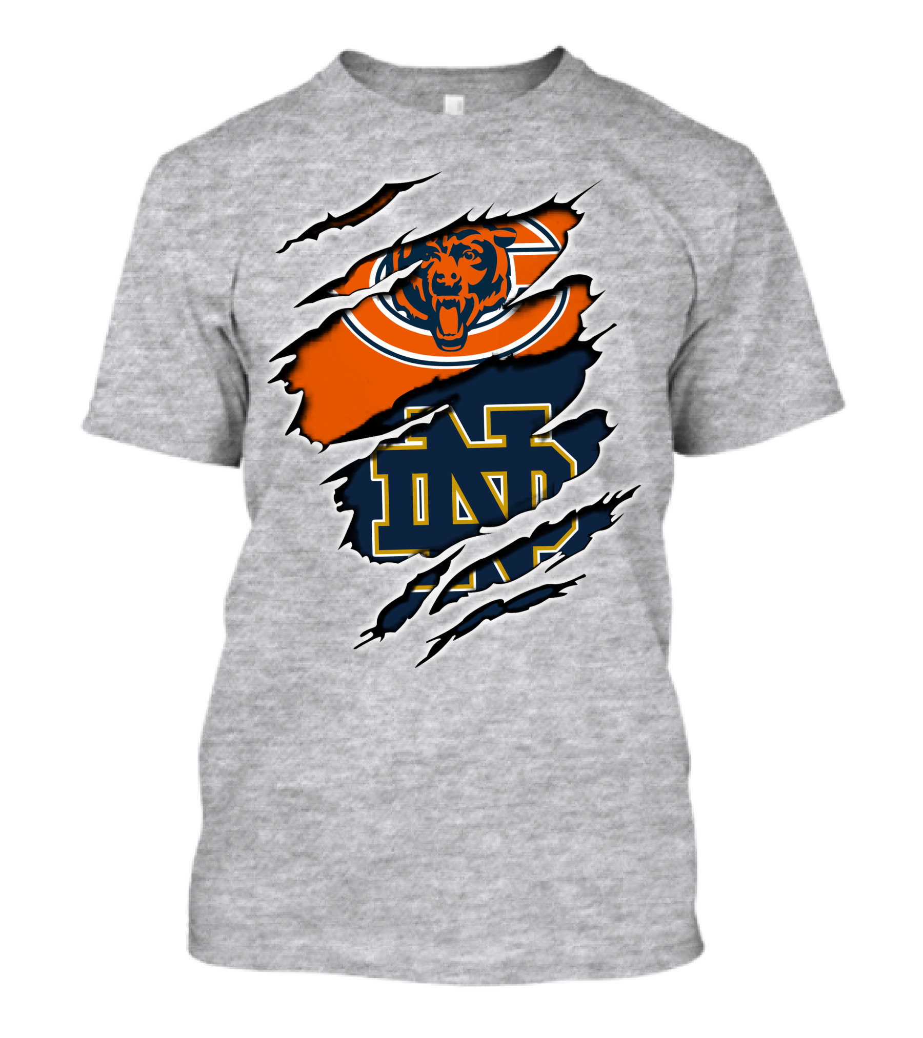 The Chicago Bears Notre Dame Fighting Irish Fusion T-shirt is designed for everyday wear and a consistent fit. Fabric is pre-shrunk ring-spun cotton with durable stitching. See the size chart below for exact measurements.
