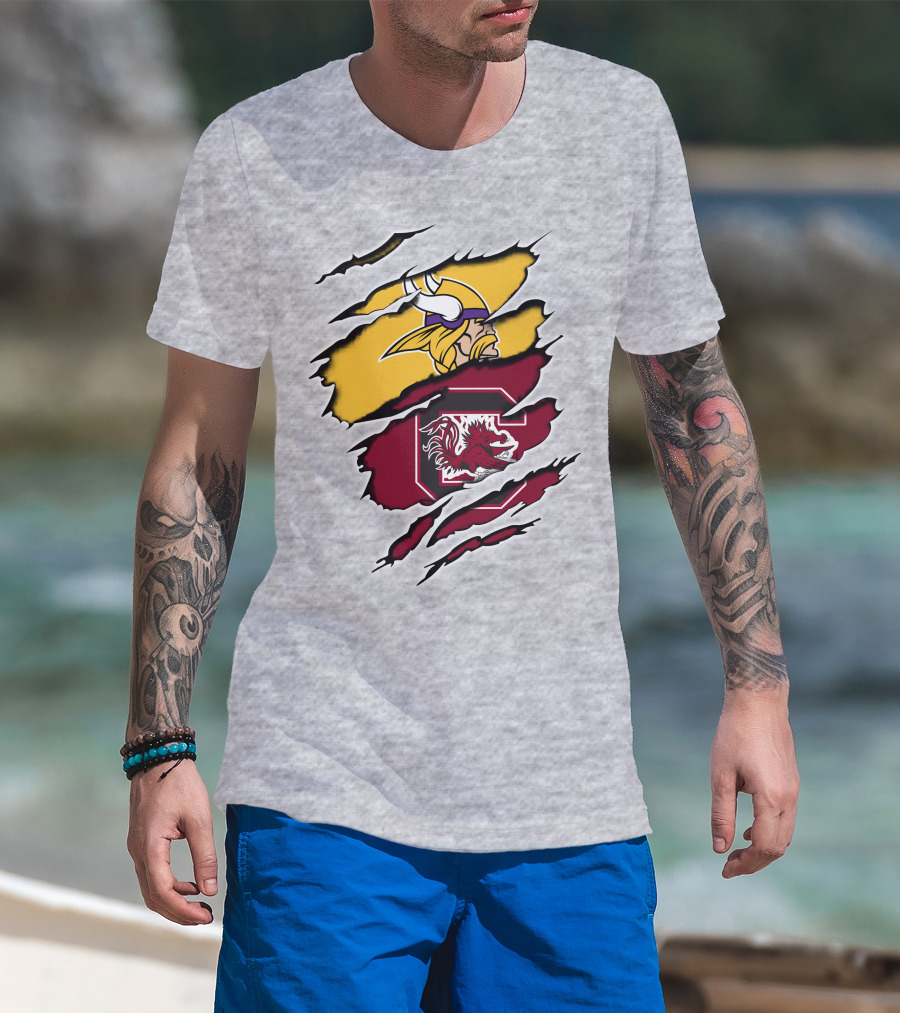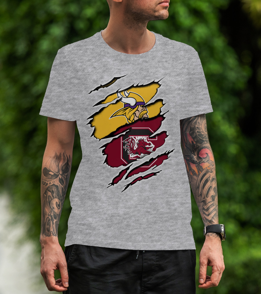 Vikings Gamecocks Logo Fusion Tear T-Shirt