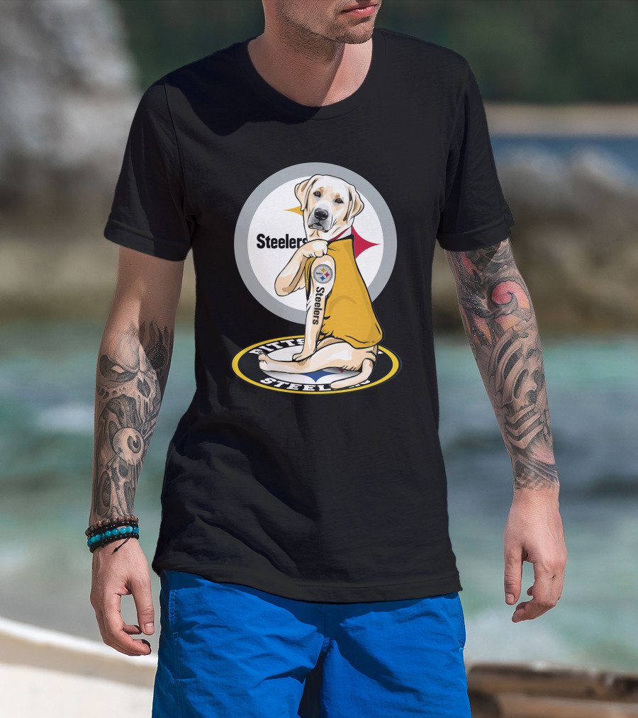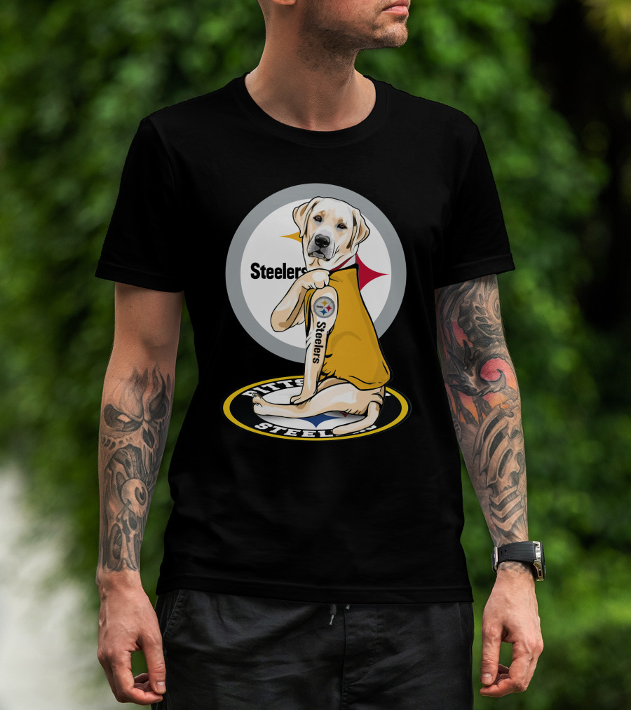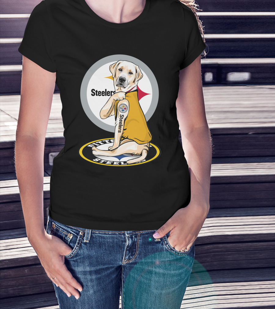 The Steelers Labrador NFL Fan T-shirt is designed for everyday wear and a consistent fit. Fabric is pre-shrunk ring-spun cotton with durable stitching. See the size chart below for exact measurements.