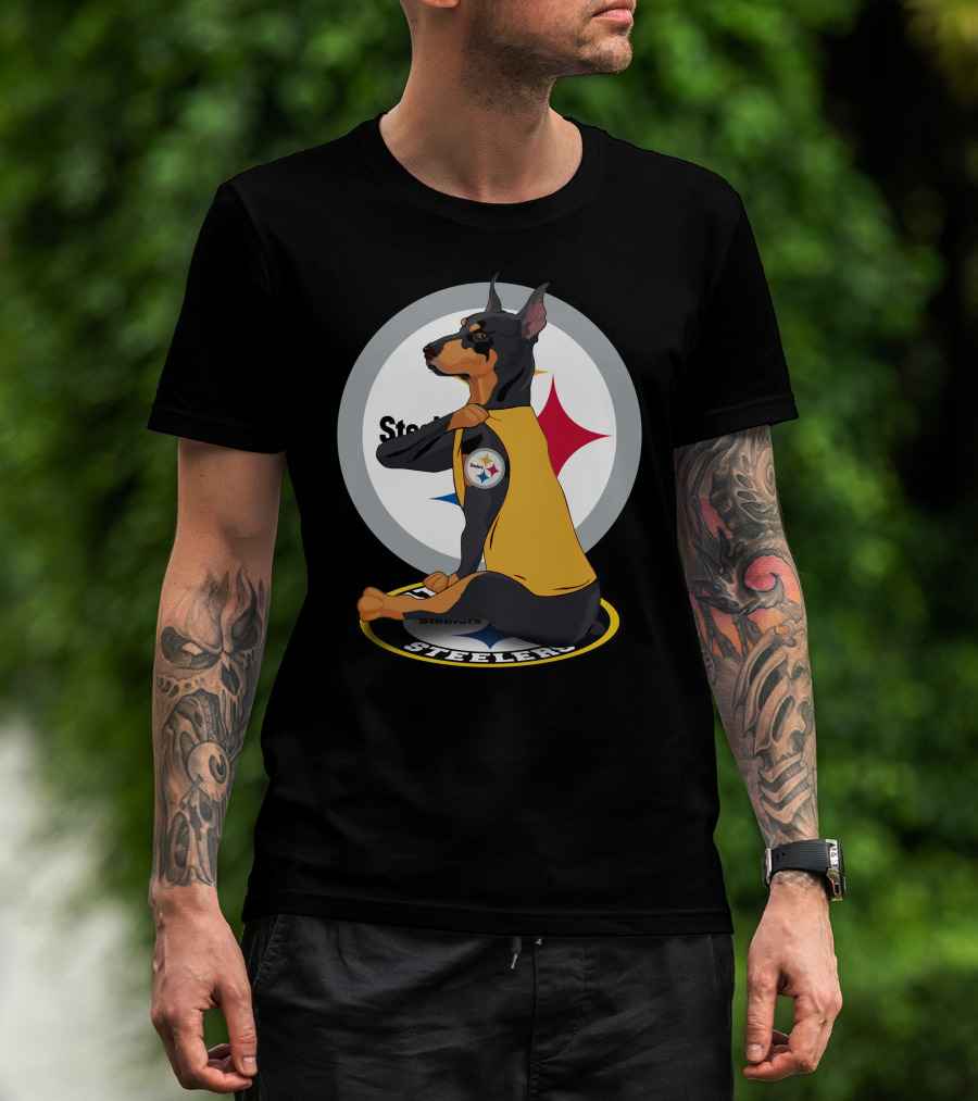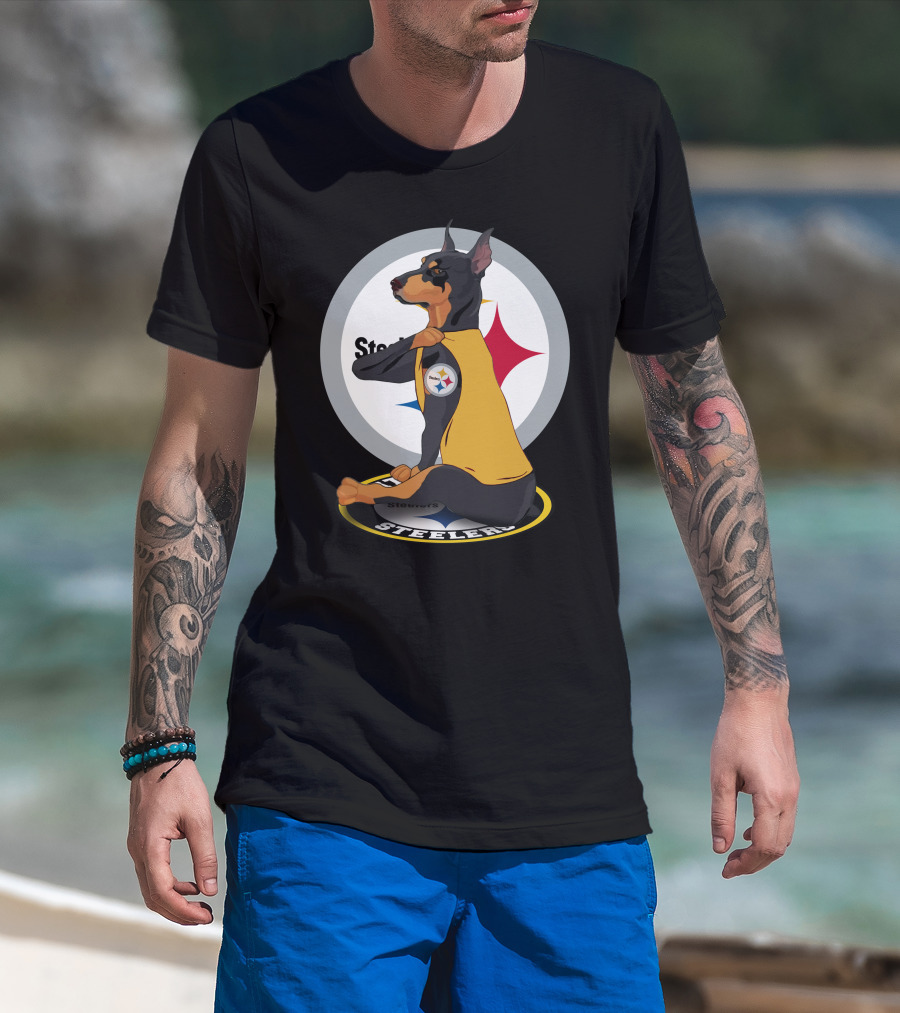 Steelers Dobermann Sitting On Steelers T-Shirt