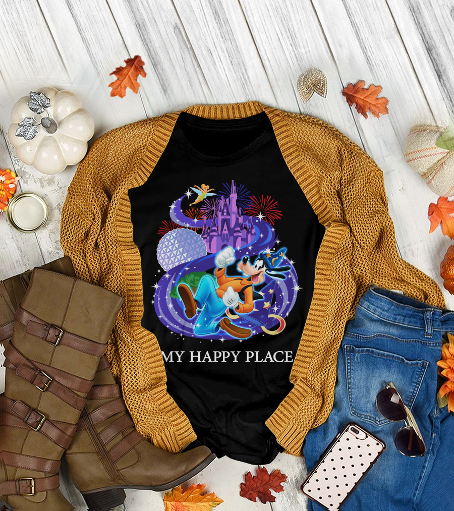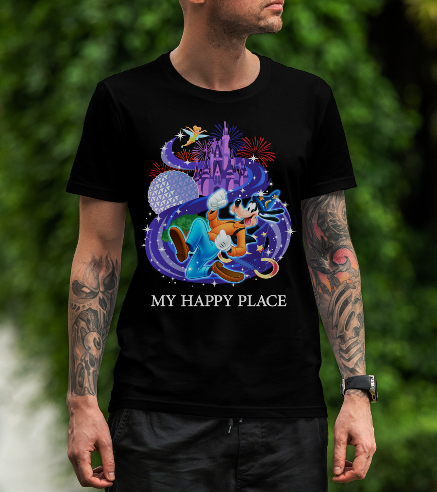 Disney Goofy My Happy Place Magic Kingdom Castle Epcot Fireworks T-Shirt