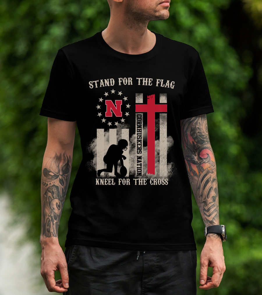 Stand For The Flag Cornhuskers Nation Kneel For The Cross T-Shirt