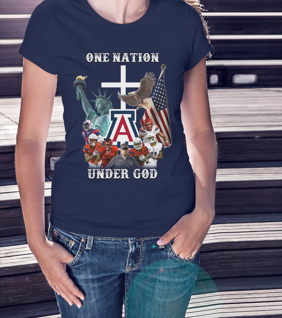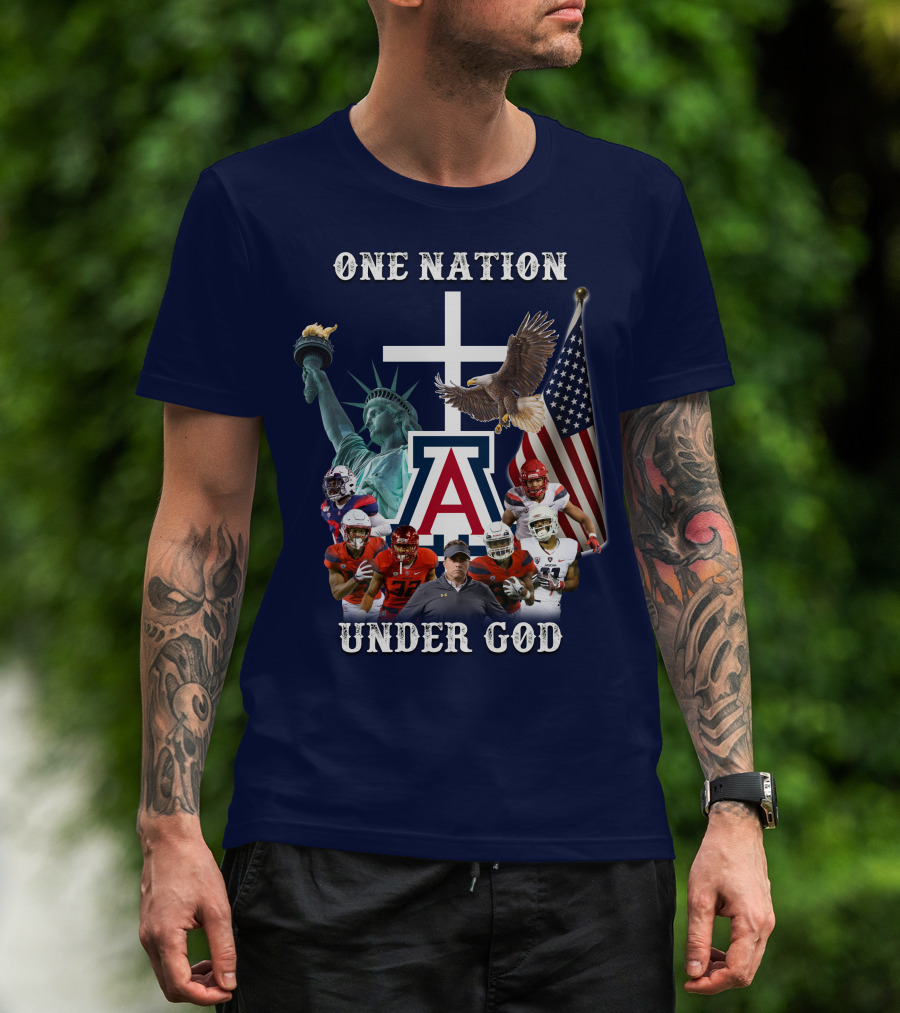 The One Nation Under God Coach with Statue of Liberty, Flag, Eagle, and Football Players T-shirt is designed for everyday wear and a consistent fit. Fabric is pre-shrunk ring-spun cotton with durable stitching. See the size chart below for exact measurements.