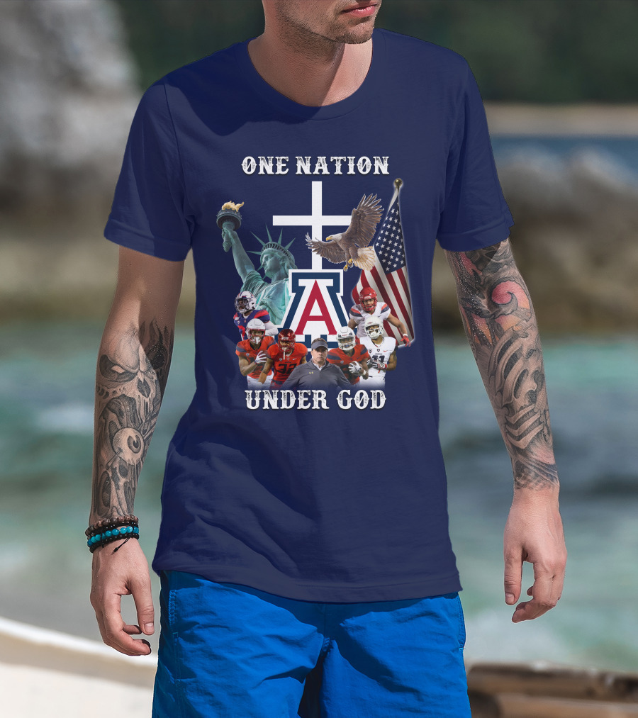 One Nation Under God Coach With Statue Of Liberty, Flag, Eagle, And Football Players T-Shirt