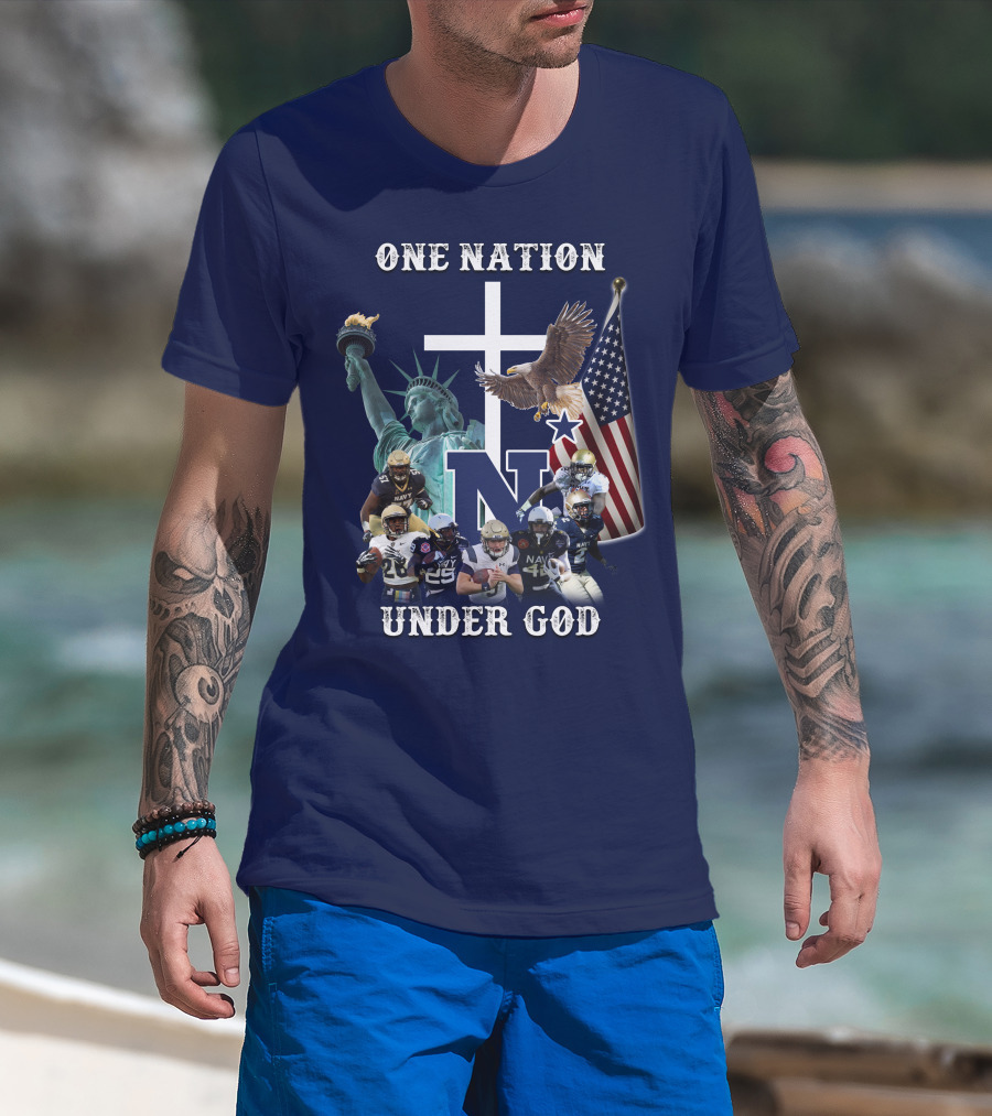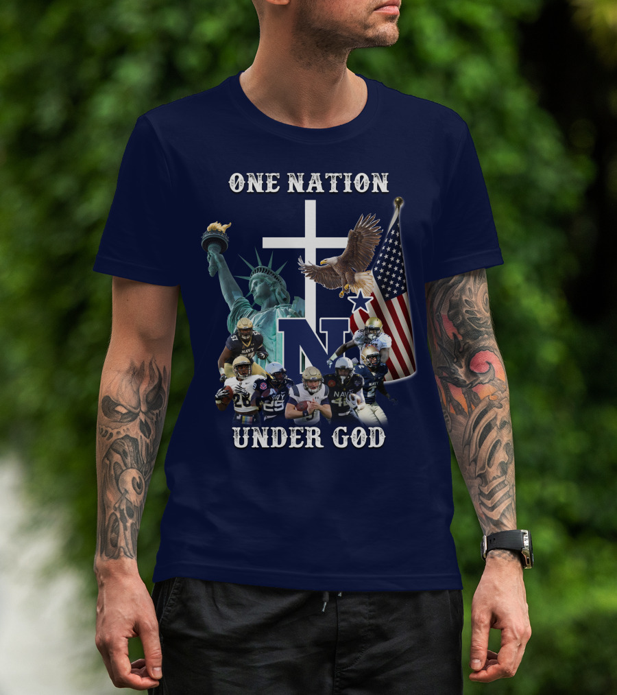 NM One Nation Under God Navy Football Statue Liberty American Flag Eagle T-Shirt