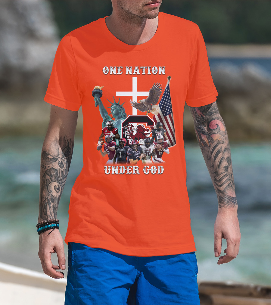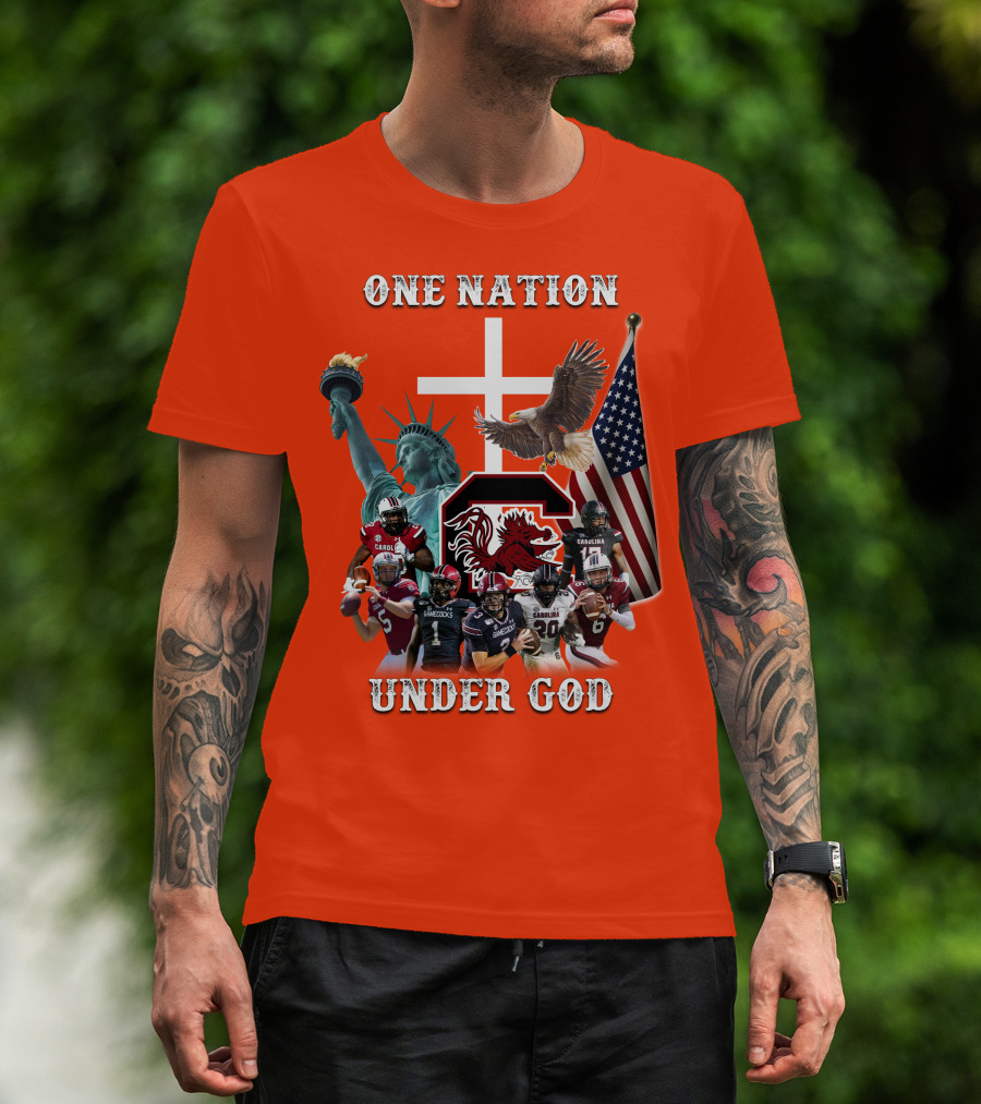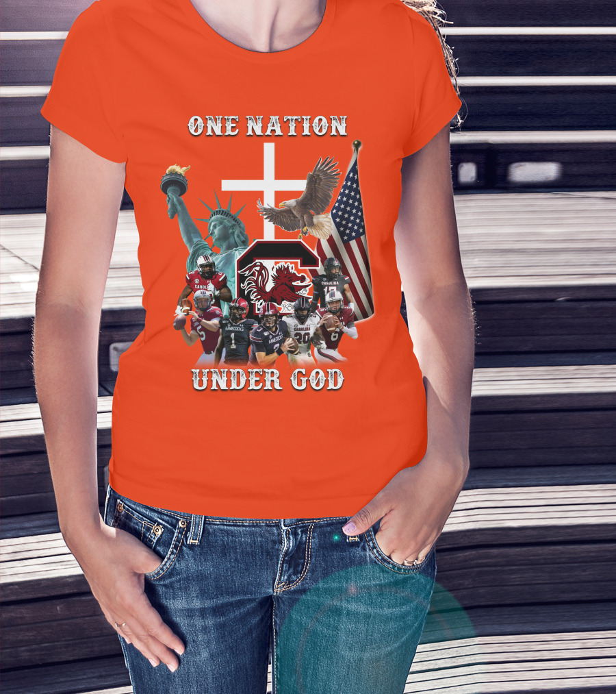 One Nation Under God South Carolina Gamecocks Football Liberty American Flag Eagle T-Shirt