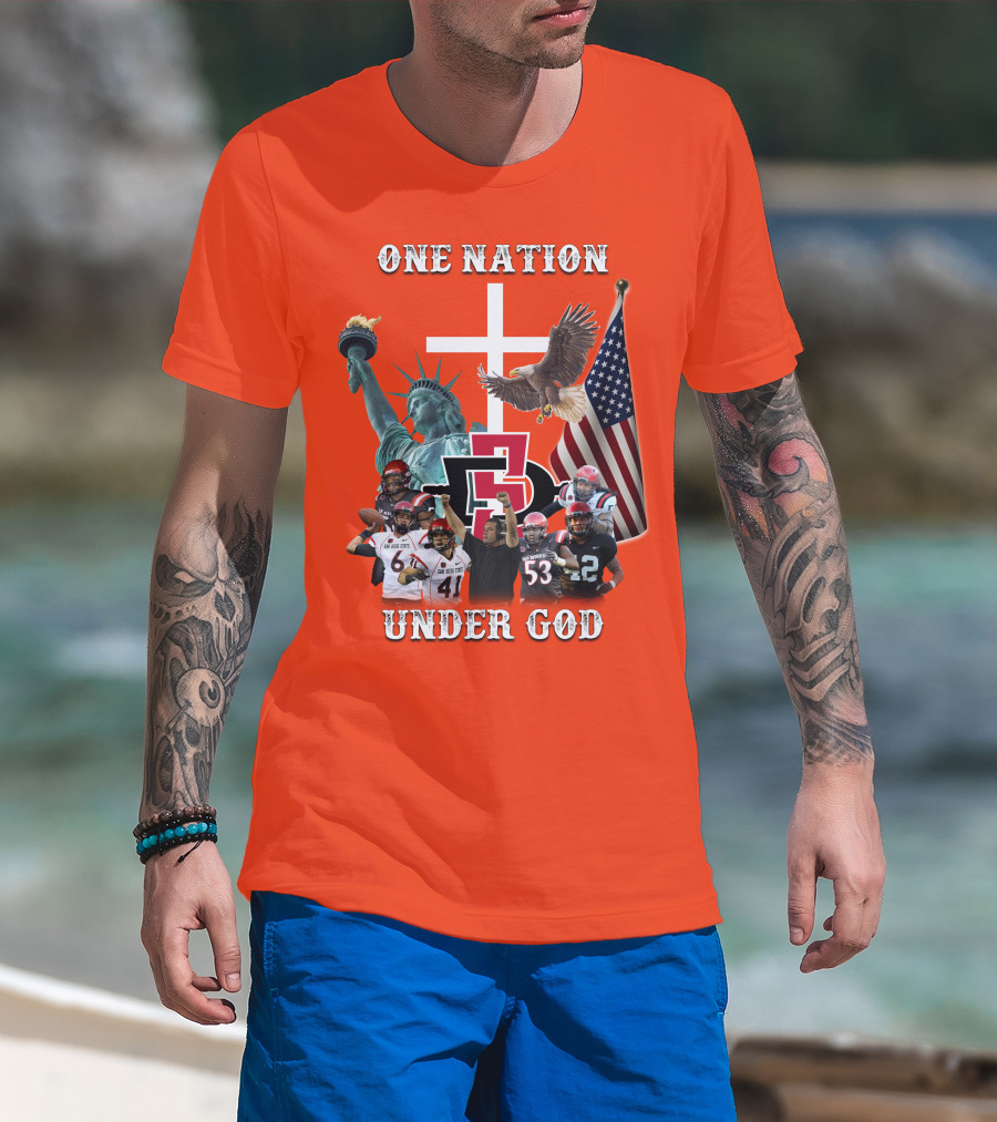 SDSA One Nation Under God Coach Statue Liberty Flag Eagle Football T-Shirt