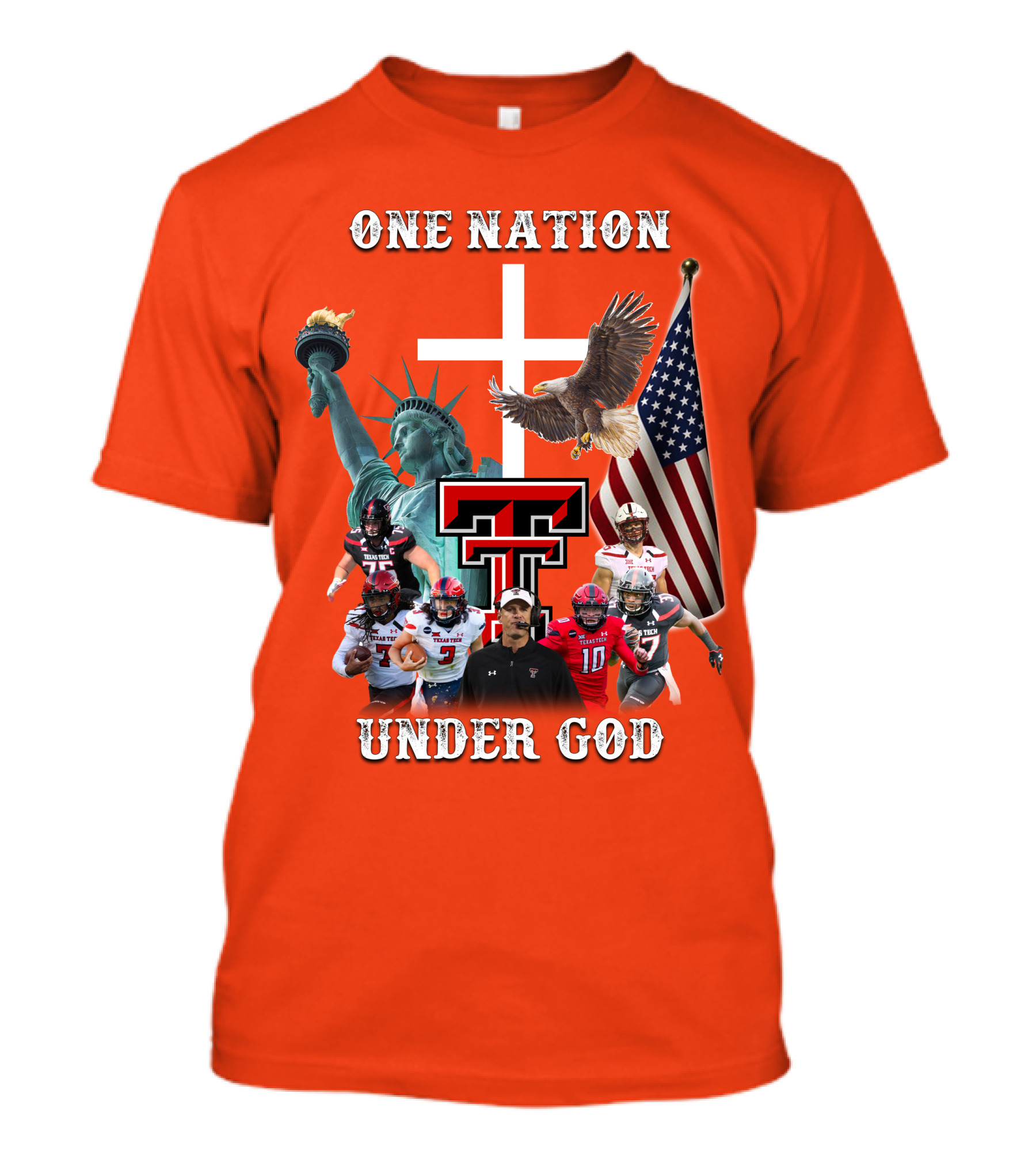 The One Nation Under God TTRR Coach Football Statue Liberty Flag Eagle T-shirt is designed for everyday wear and a consistent fit. Fabric is pre-shrunk ring-spun cotton with durable stitching. See the size chart below for exact measurements.