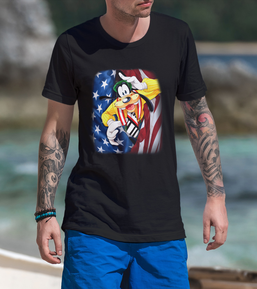 The Goofy United States Flag Patriotic T-shirt is designed for everyday wear and a consistent fit. Fabric is pre-shrunk ring-spun cotton with durable stitching. See the size chart below for exact measurements.