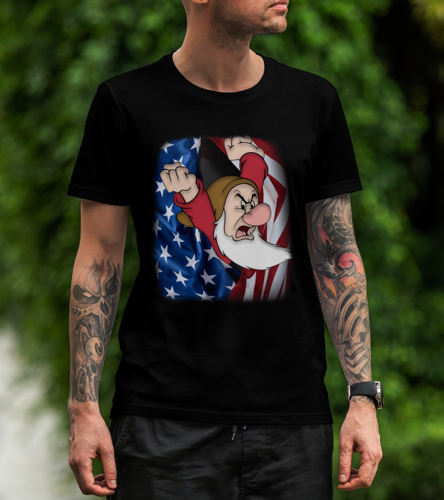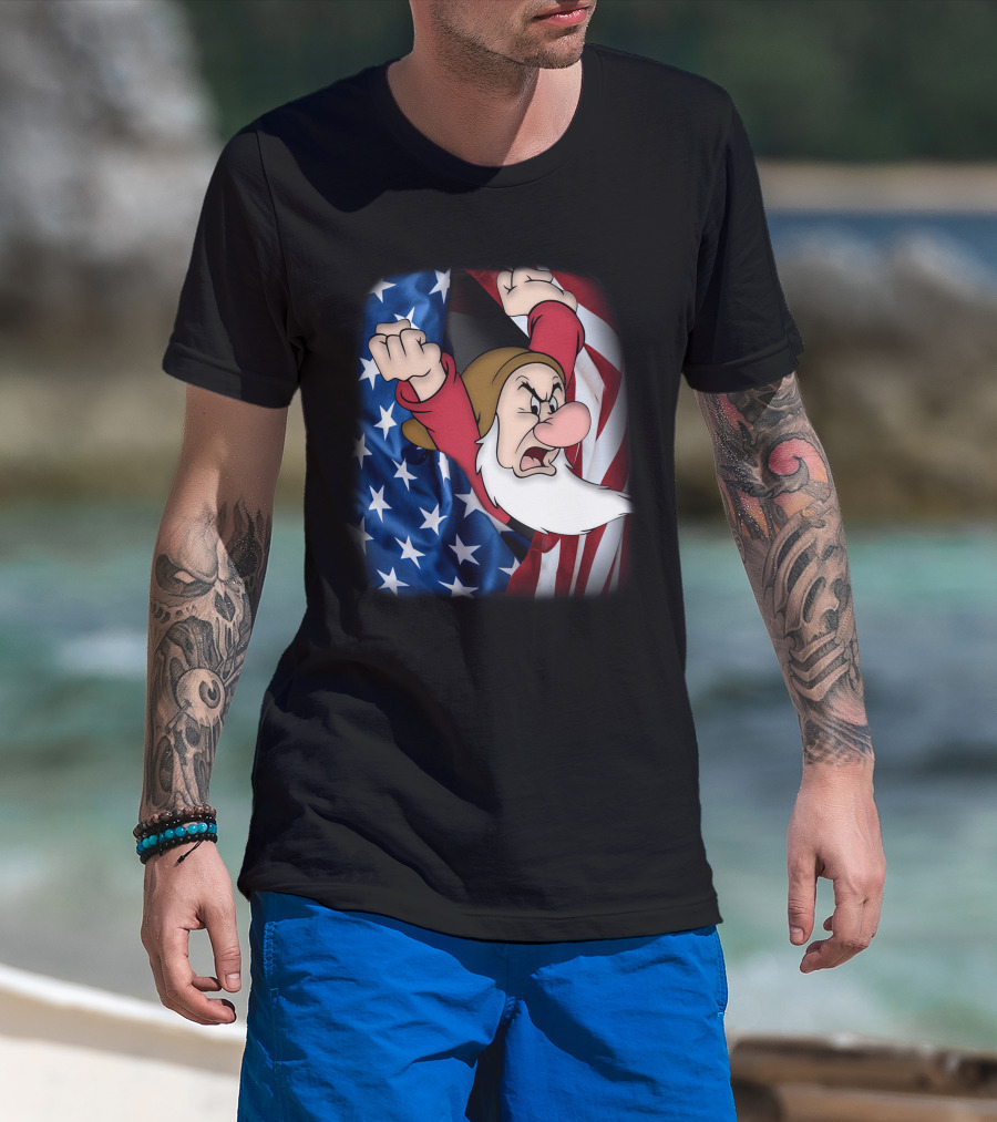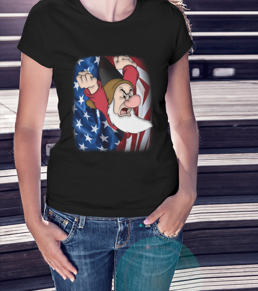 Grumpy American Flag Stars And Stripes Burst T-Shirt