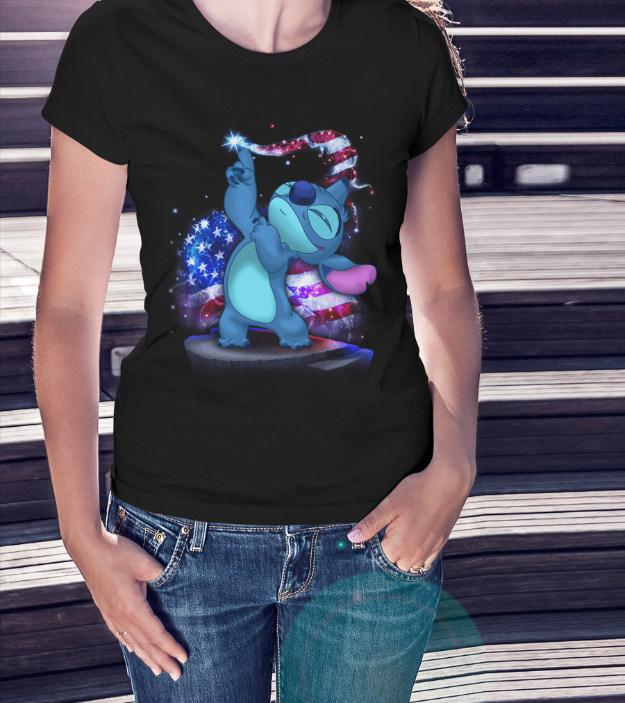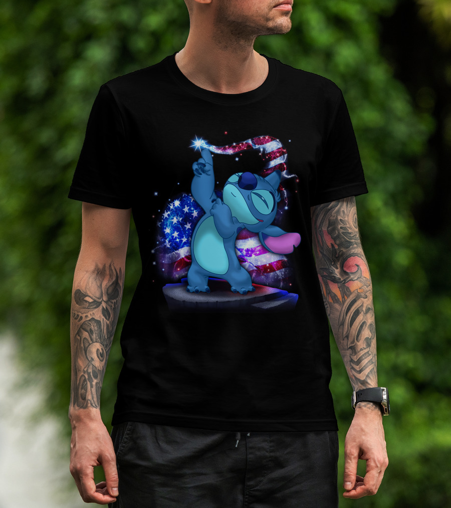 Stitch Bling July American Flag Fireworks Magic T-Shirt