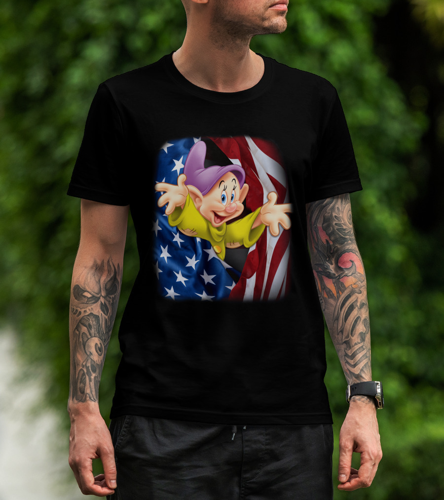 Dopey Celebrates Fourth Of July With American Flag Background T-Shirt