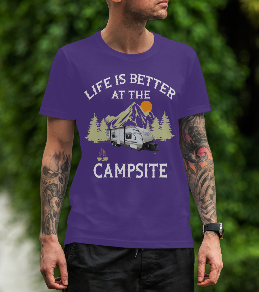 The Life Is Better at the Campsite Forest River Wildwood X Lite 261BHXL T-shirt is designed for everyday wear and a consistent fit. Fabric is pre-shrunk ring-spun cotton with durable stitching. See the size chart below for exact measurements.