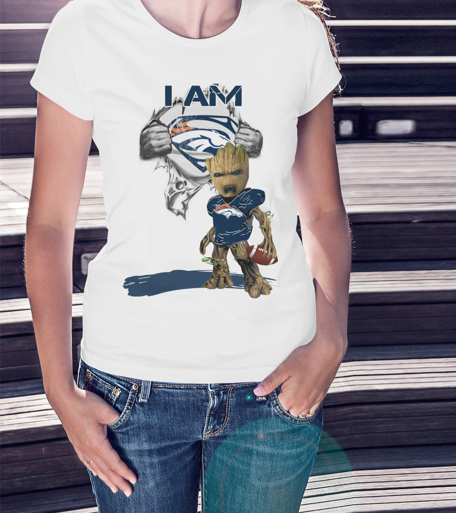 I Am Broncos Baby Groot Superman Football Fan T-Shirt