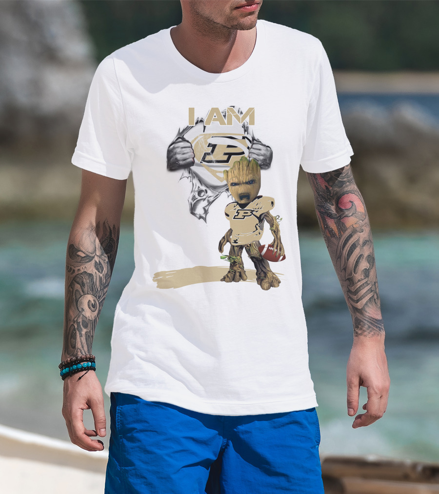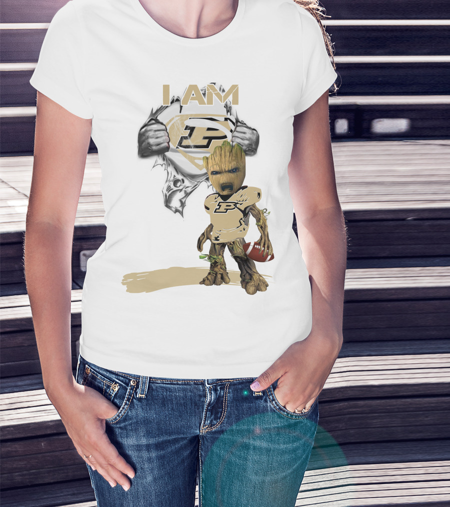 I AM Purdue Baby Groot With Football Superman T-Shirt