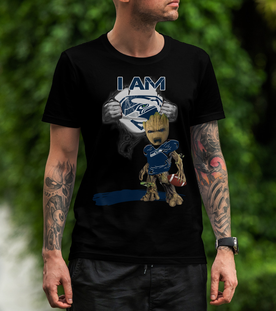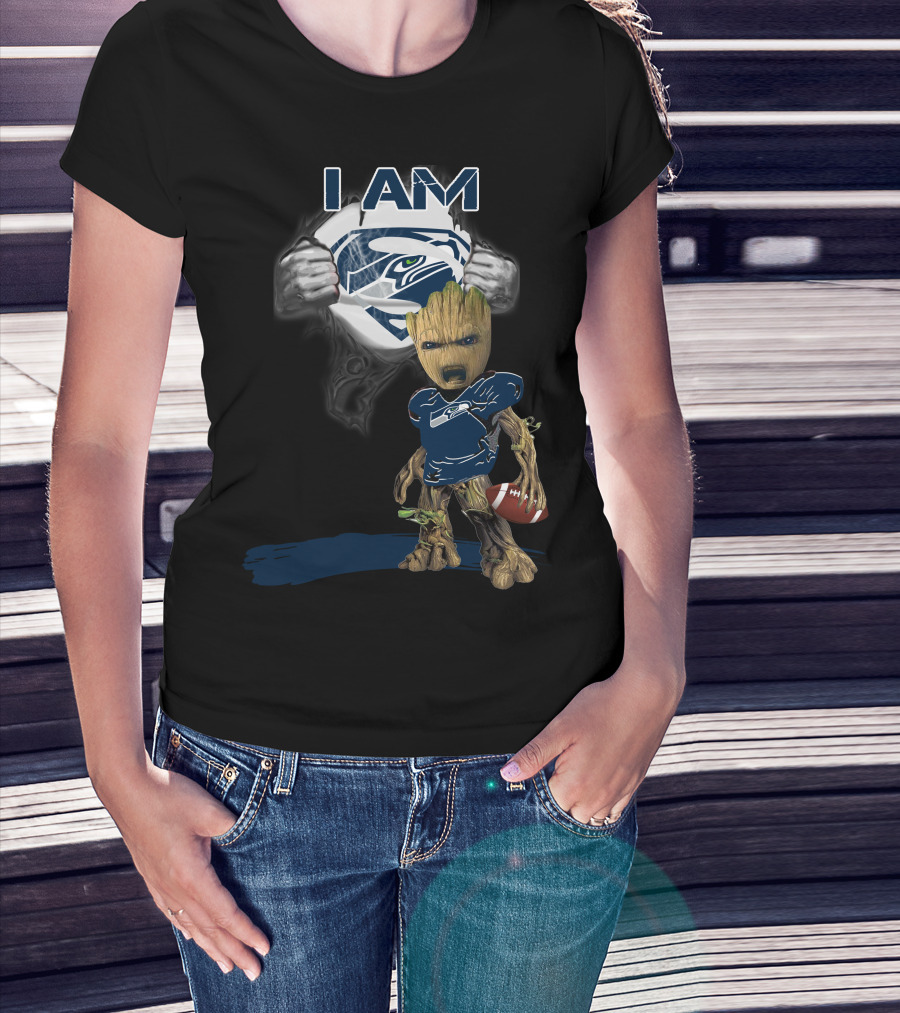 Seattle Seahawks Baby Groot Superman Football Crossover T-Shirt