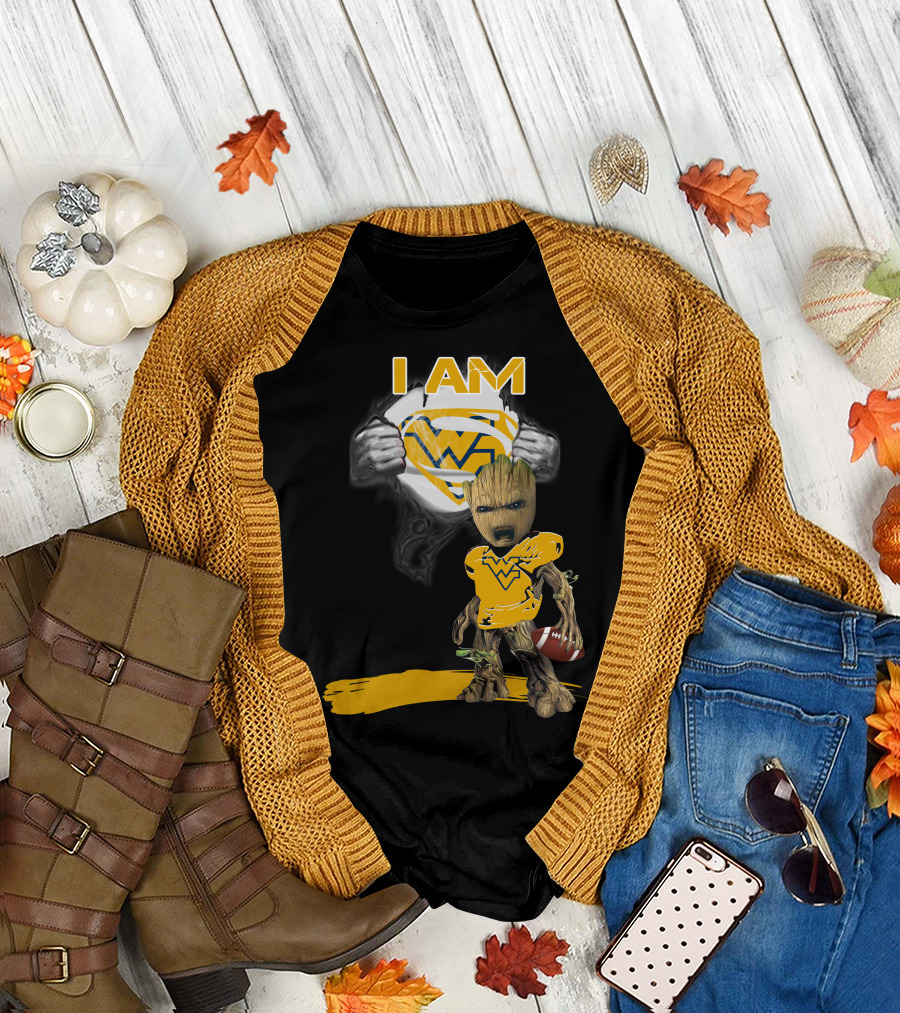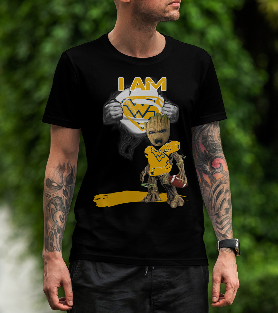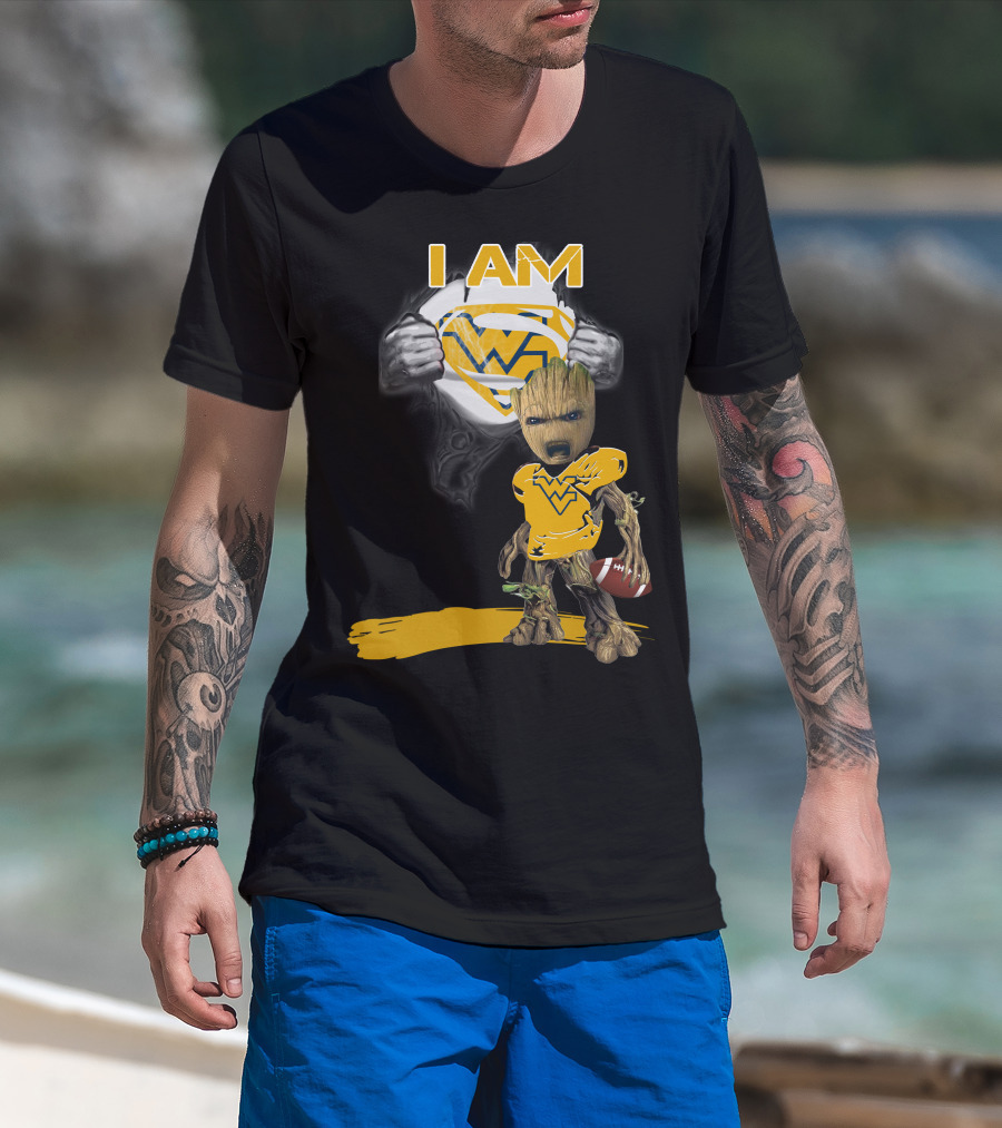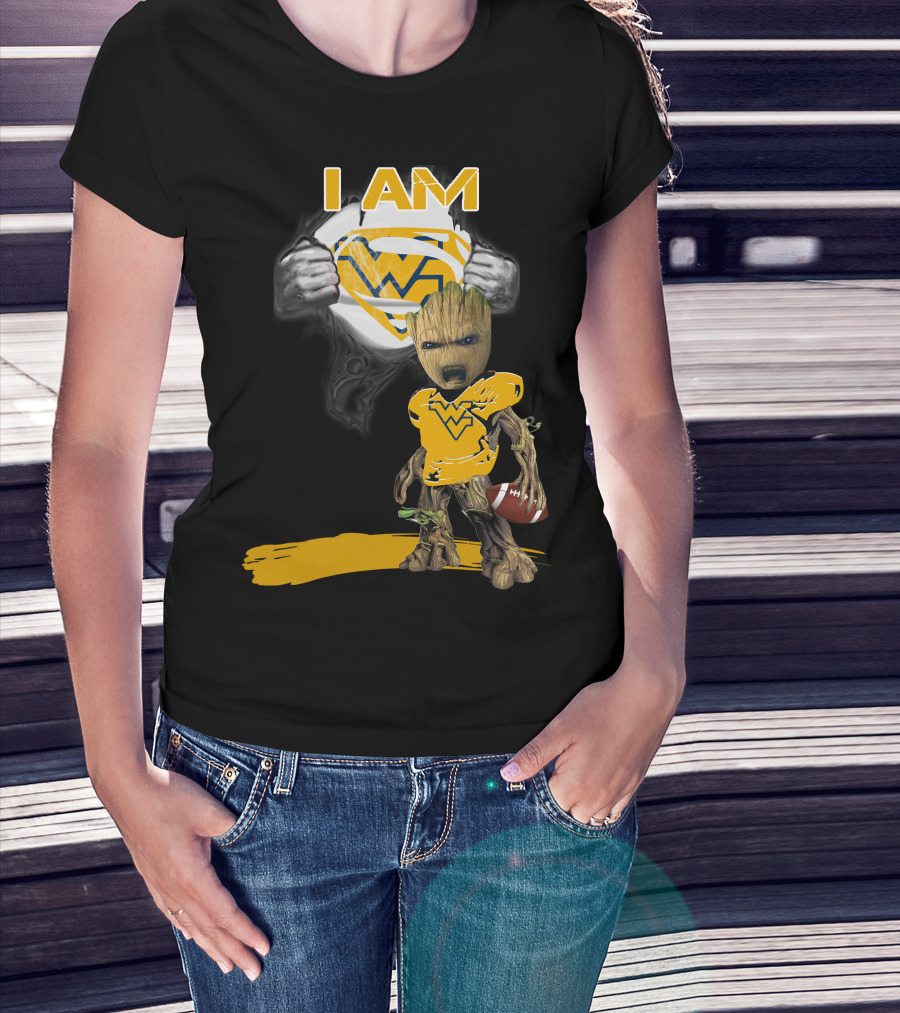 West Virginia Baby Groot Superman Football T-Shirt