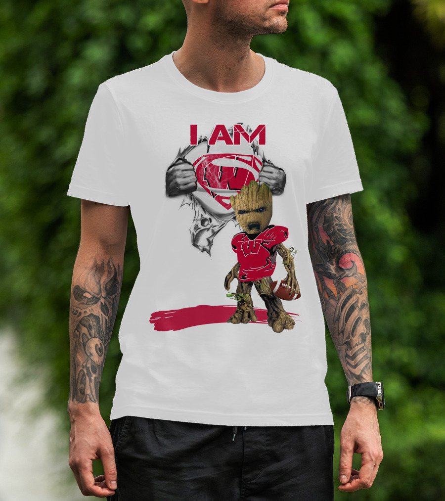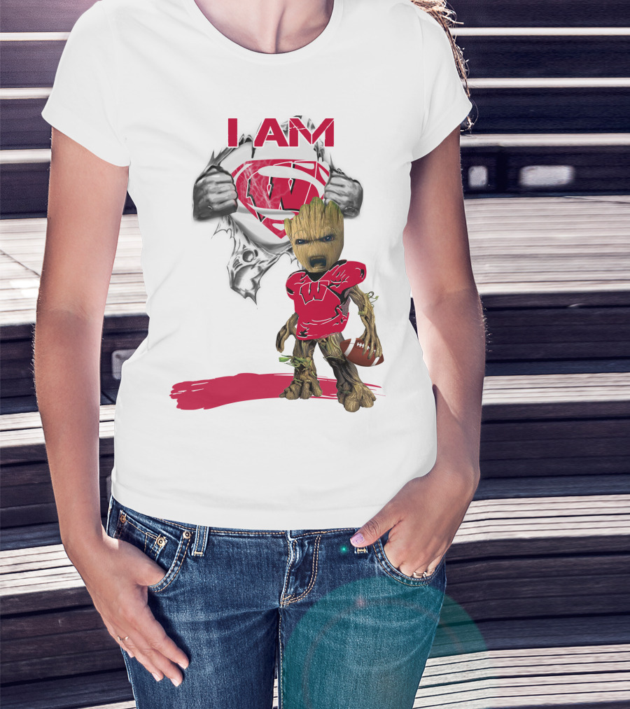 I Am Wisconsin Baby Groot Superman Football T-Shirt