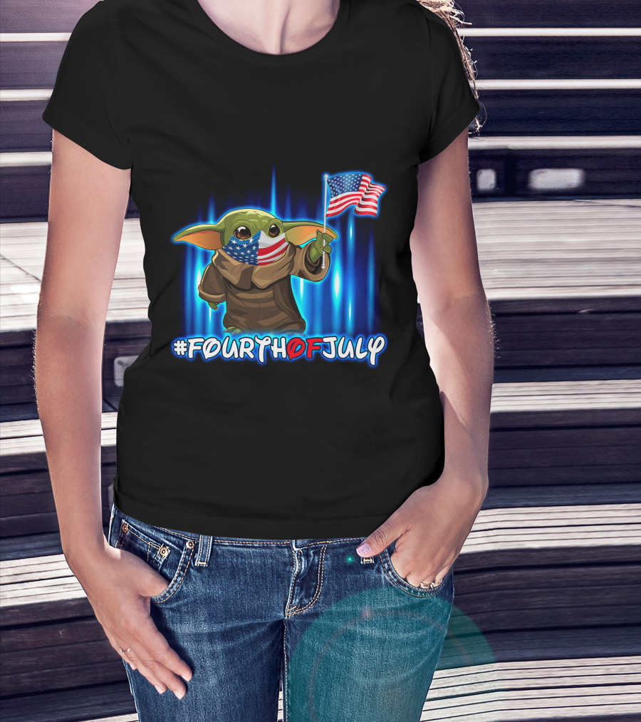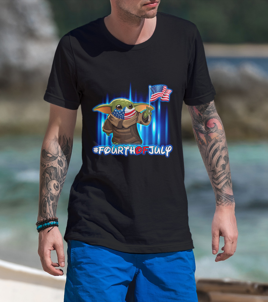 FOURTHOFJULY Baby Yoda With American Flag T-Shirt