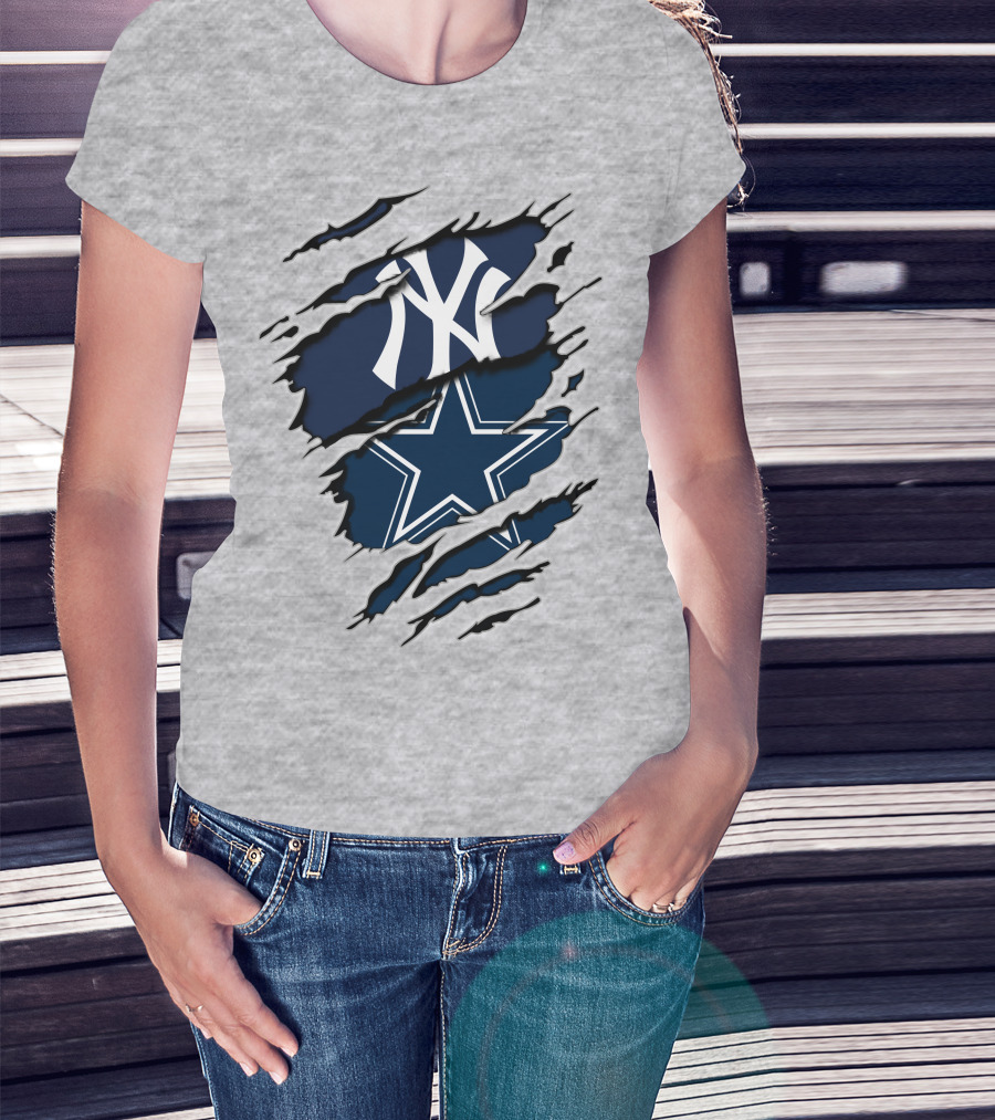 Cowboys Yankees Logo Mashup On Torn Background Gray T-Shirt