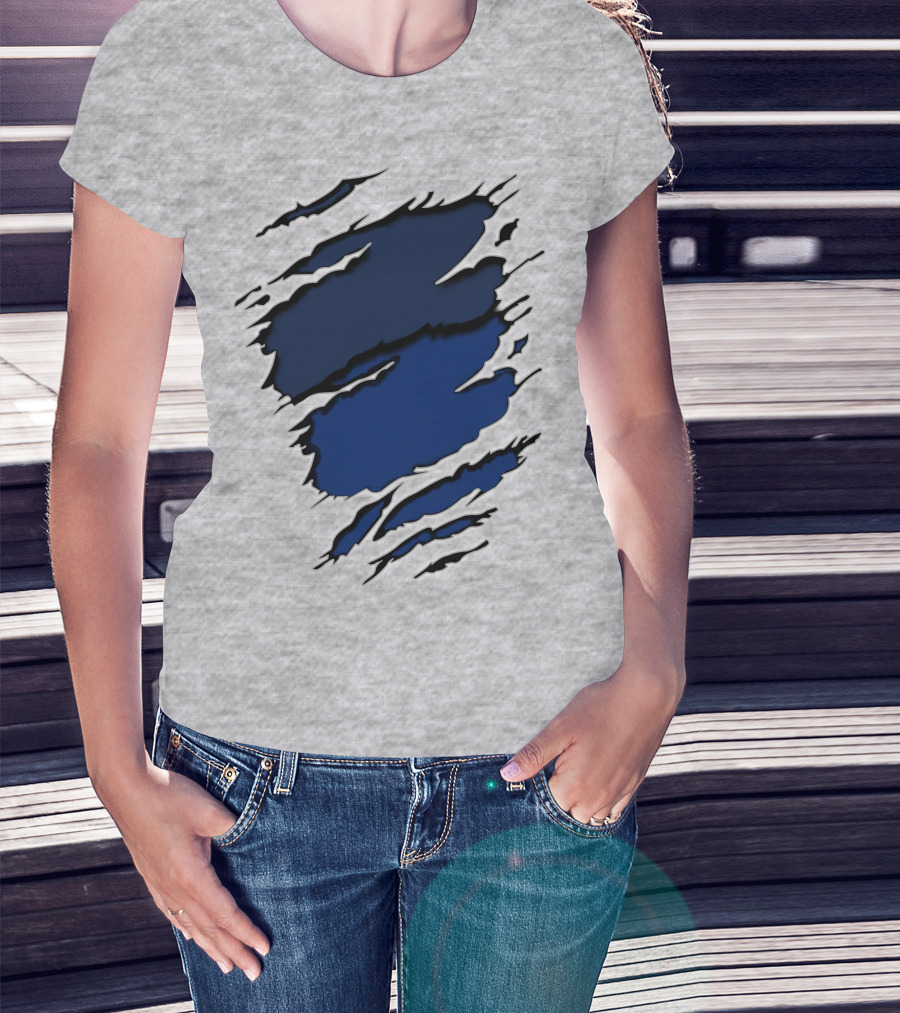 Cow Cub Tiger Stripes Blue Torn Look T-Shirt