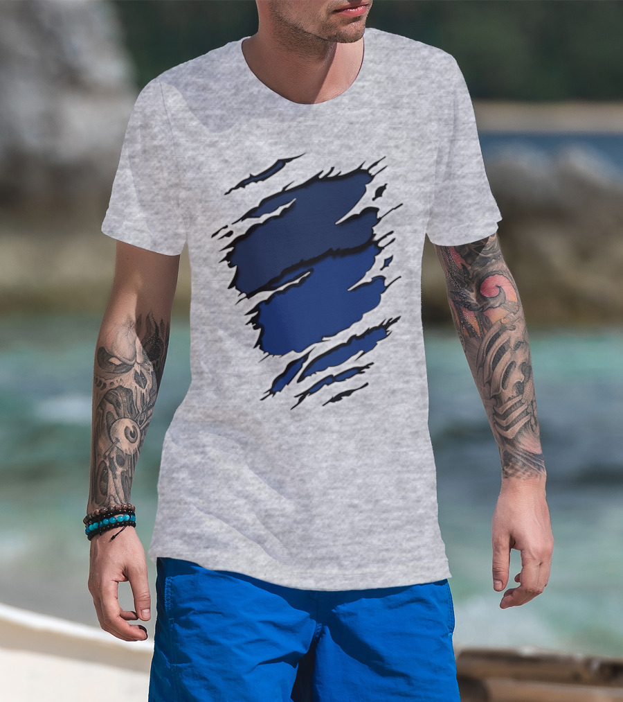 The Cow Cub Tiger Stripes Blue Torn Look T-shirt is designed for everyday wear and a consistent fit. Fabric is pre-shrunk ring-spun cotton with durable stitching. See the size chart below for exact measurements.