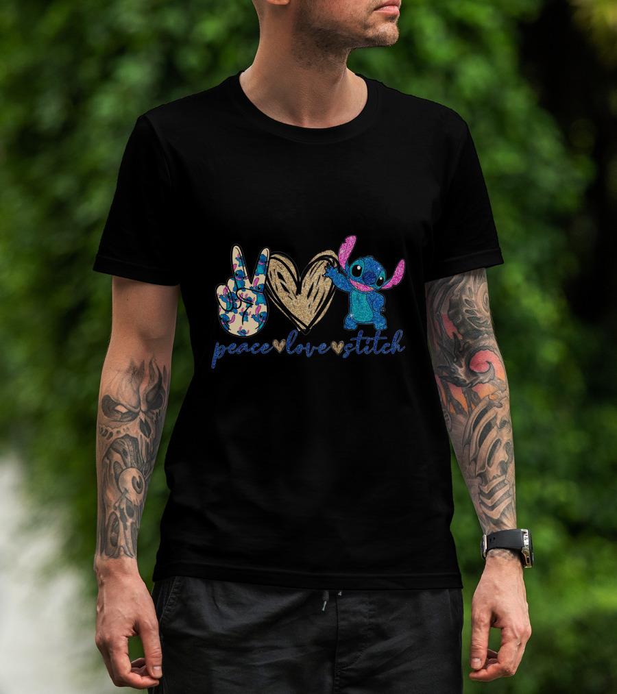 Peace Love Stitch Glittery Heart And Peace Sign T-Shirt