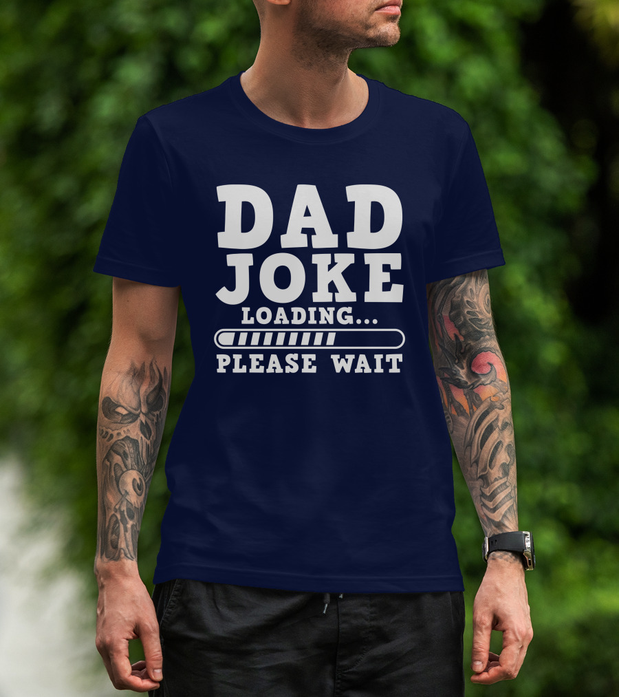 The Dad Joke Loading Please Wait Progress Bar Humor T-shirt is designed for everyday wear and a consistent fit. Fabric is pre-shrunk ring-spun cotton with durable stitching. See the size chart below for exact measurements.