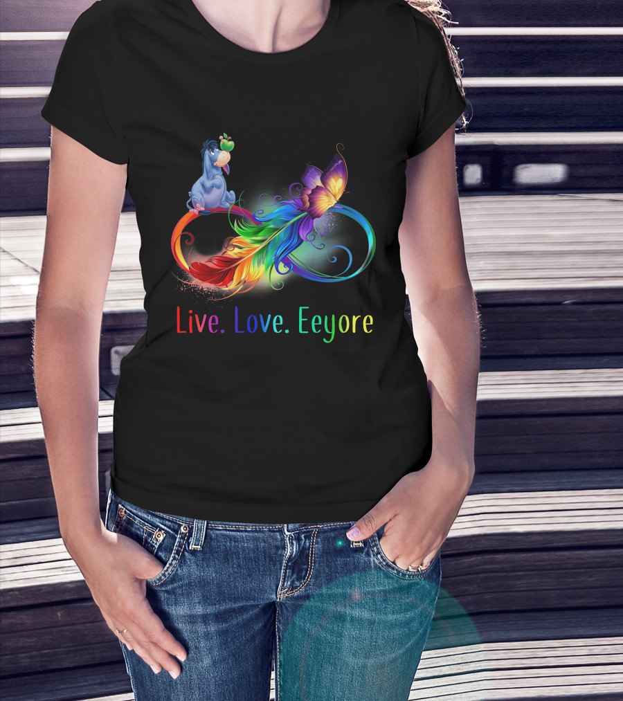 Live Love Eeyore Infinity Rainbow Butterfly Feather T-Shirt