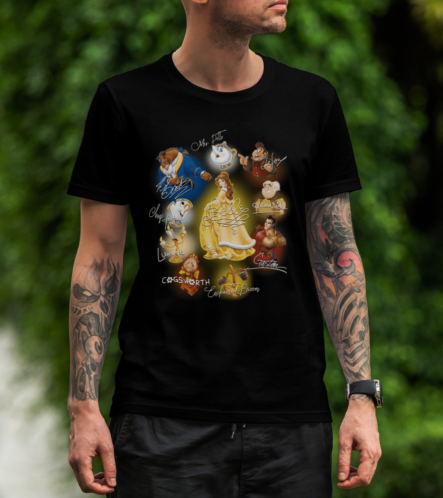 Belle Beast Mrs. Potts Chip Lumiere Cogsworth Enchanted Broom Gaston Maurice Lefou T-Shirt