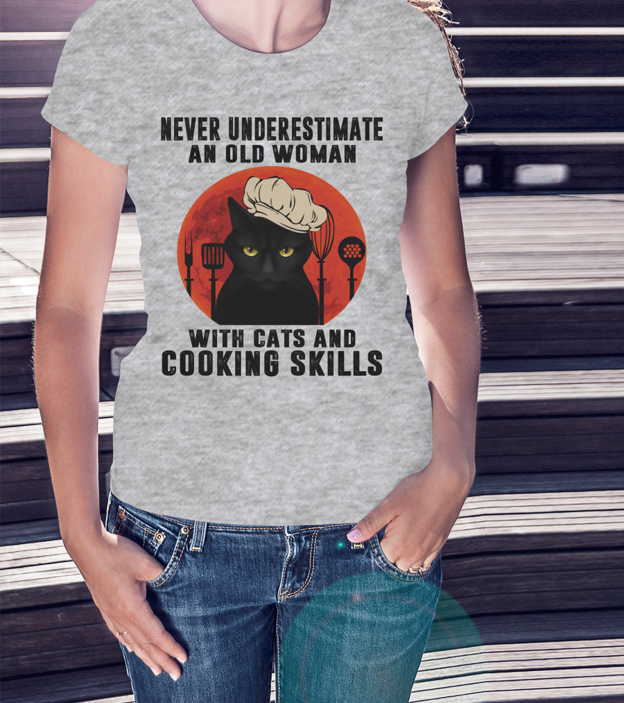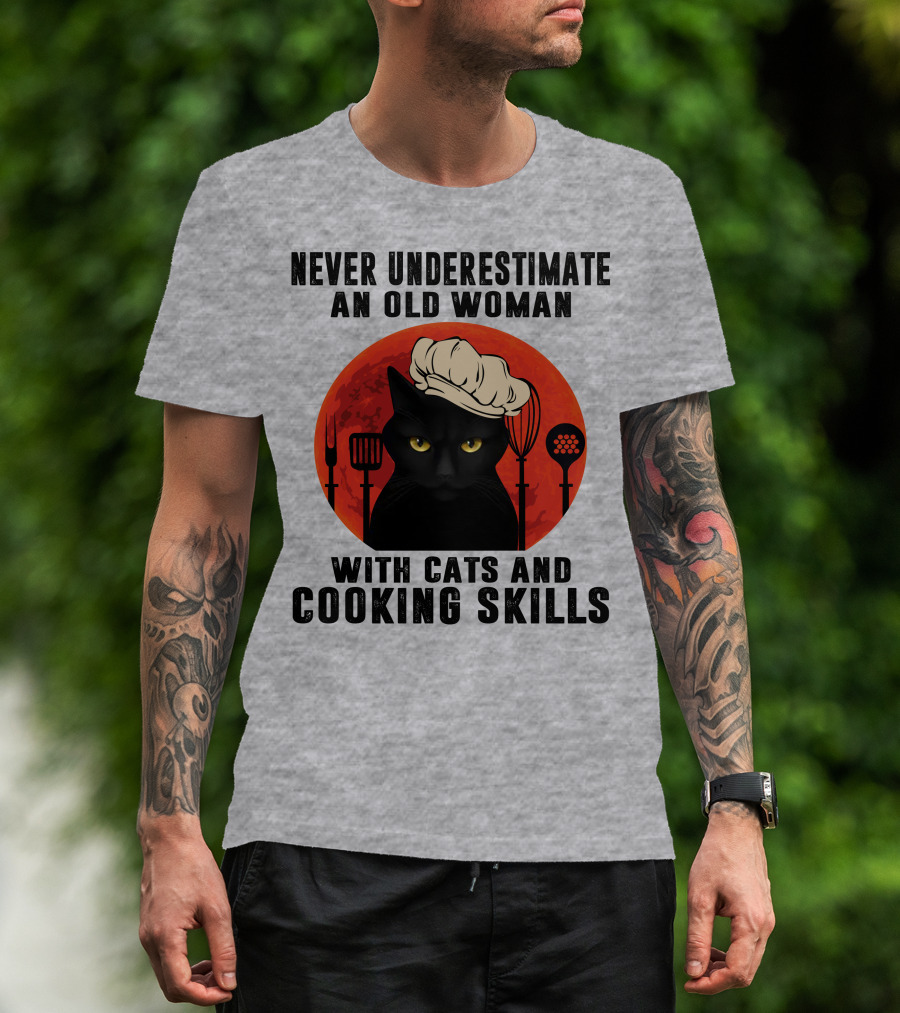 Never Underestimate An Old Woman With Cats And Cooking Skills T-Shirt
