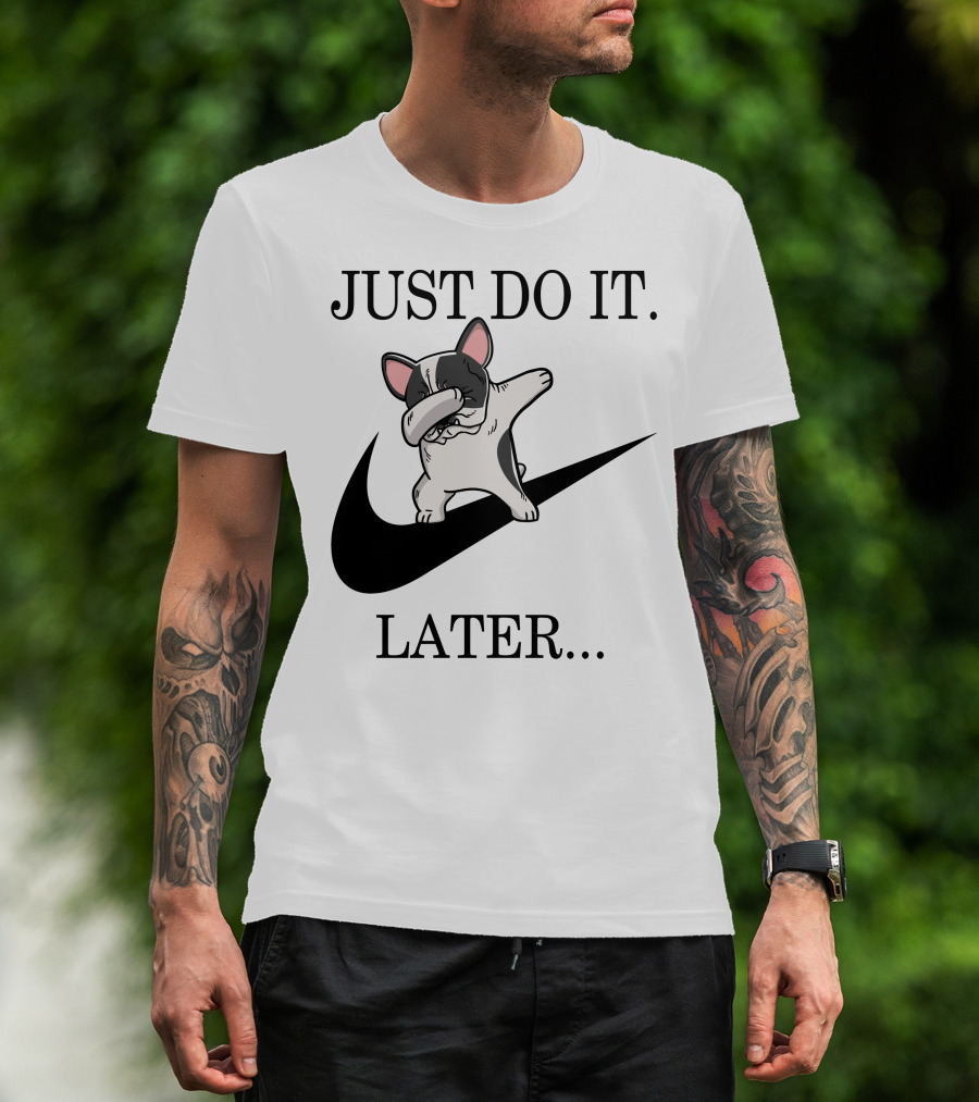 Just Do It Later Funny Dabbing Pied French Bulldog Dog T-Shirt