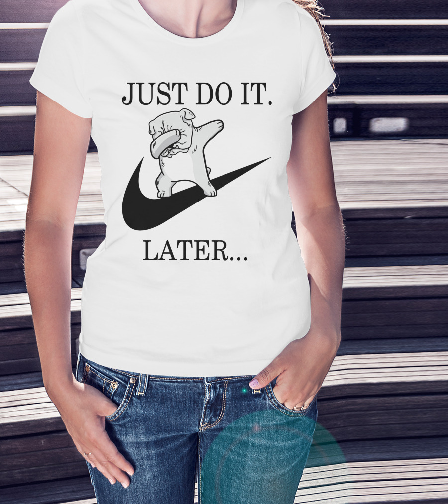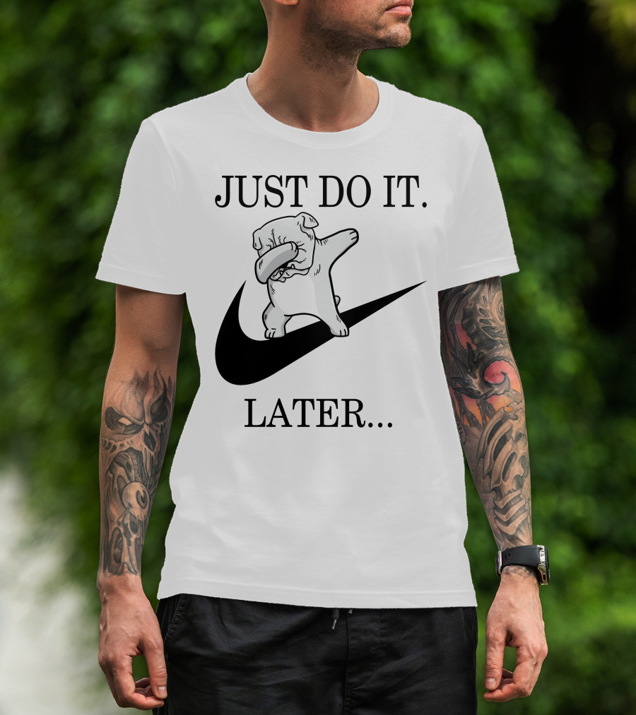 JUST DO IT LATER WHITE ENGLISH BULLDOG DABBING T-Shirt