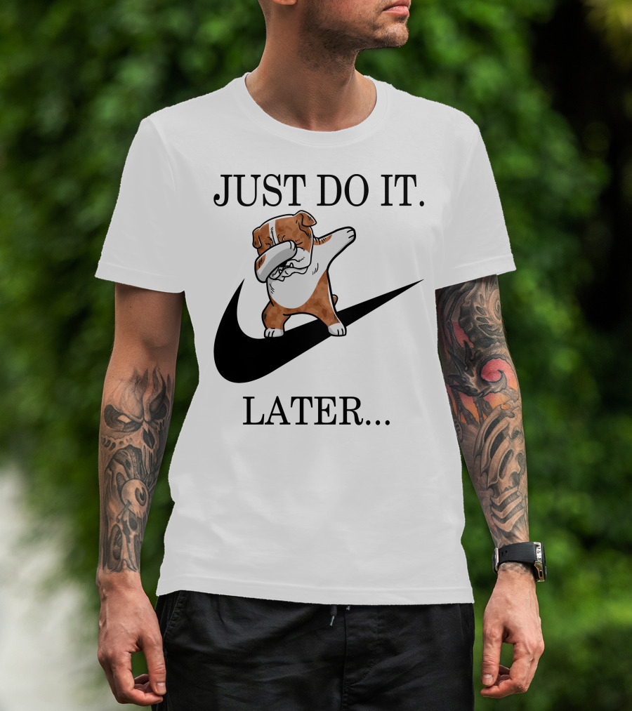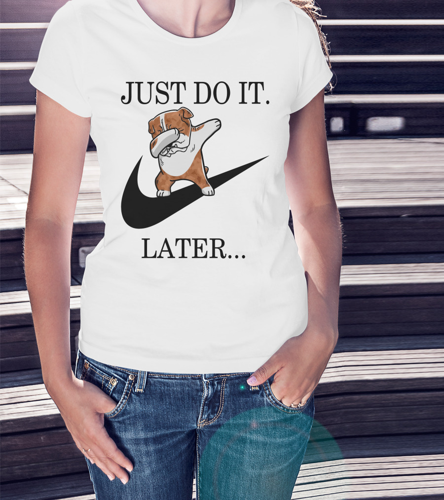 JUST DO IT LATER Brindle English Bulldog Dabbing Parody 001 T-Shirt