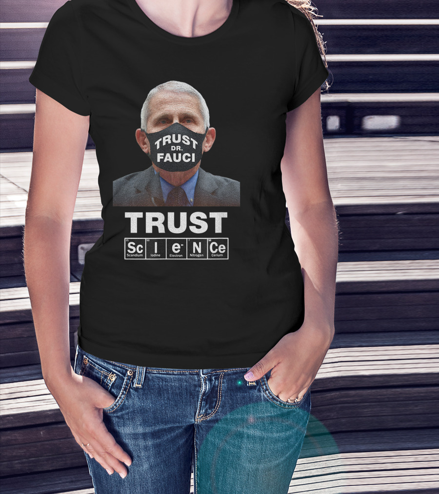 The Trust Dr. Fauci Trust Science Scandium Iodine Electron Nitrogen Cerium T-shirt is designed for everyday wear and a consistent fit. Fabric is pre-shrunk ring-spun cotton with durable stitching. See the size chart below for exact measurements.