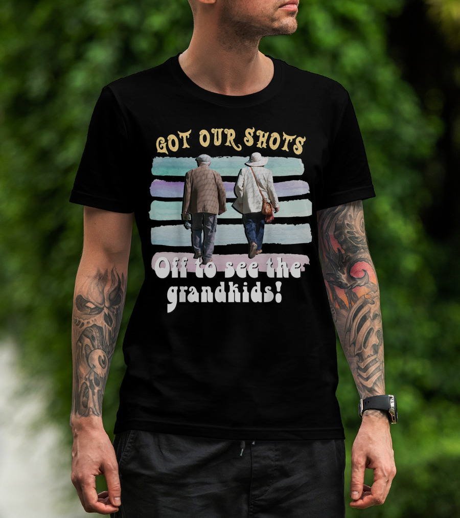 Got Our Shots Off To See The Grandkids Funny Cute Grandpa Grandma T-Shirt