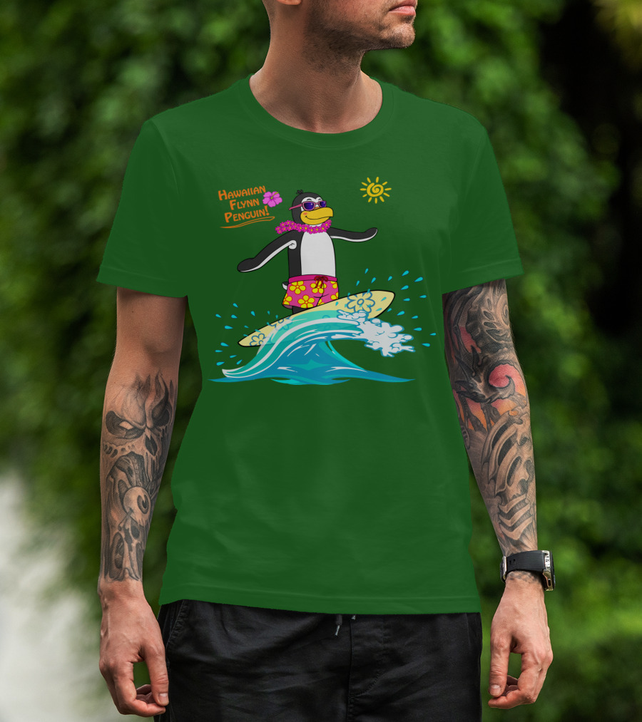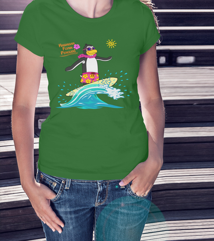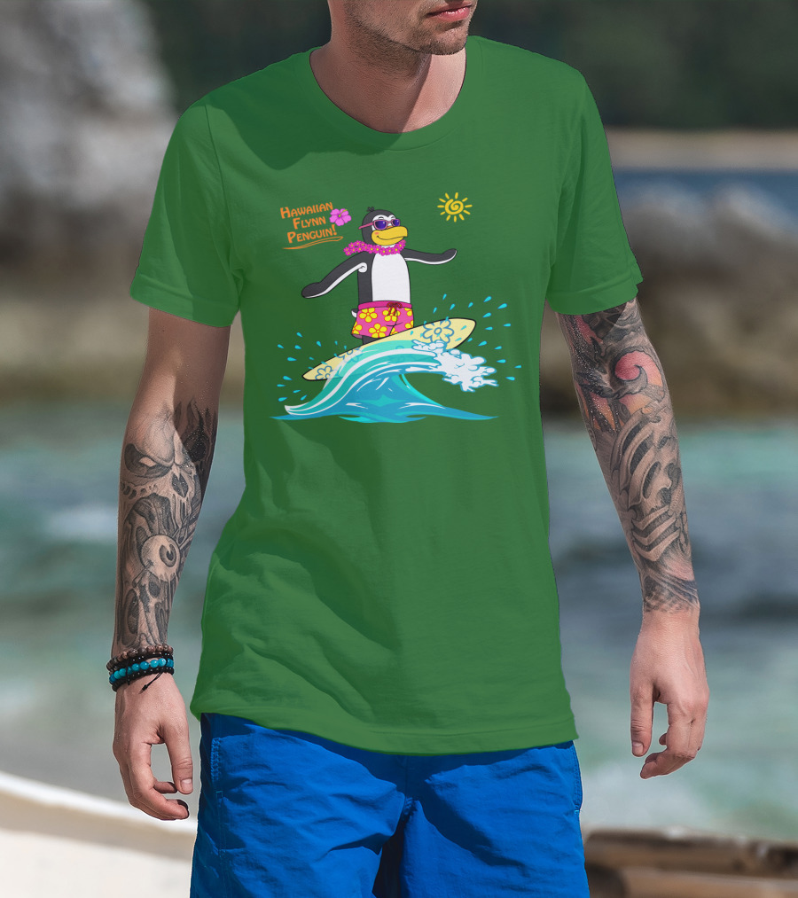Hawaiian Flynn Penguin Surfing With Floral Lei And Sunglasses T-Shirt