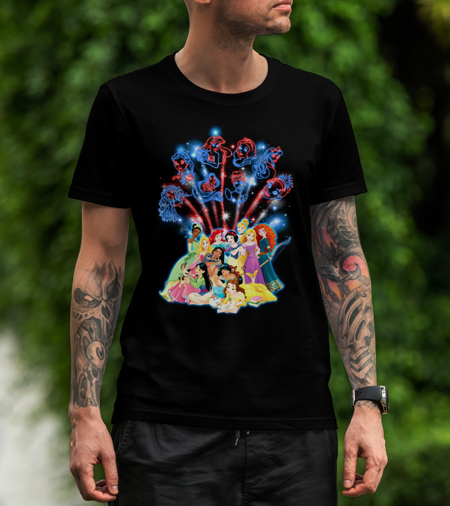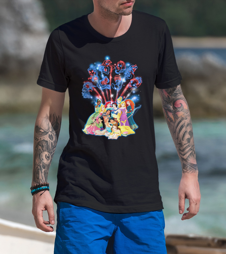 Disney Princess Characters And Fireworks T-Shirt