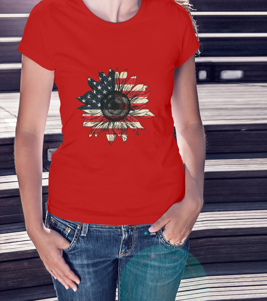 Sunflower American Flag USA Independence Day Flower T-Shirt