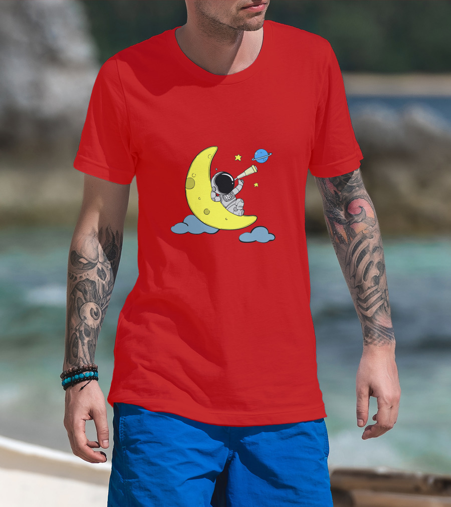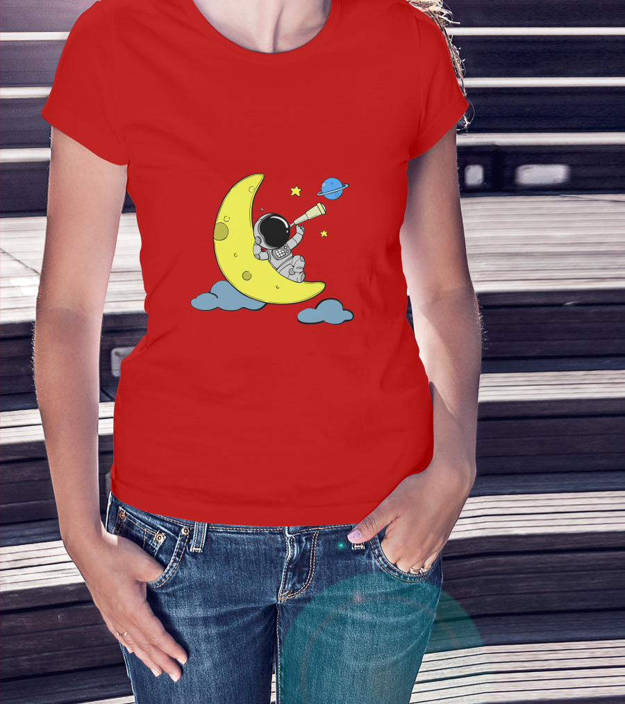 The Astronaut on Moon for Women Universe Adventure T-shirt is designed for everyday wear and a consistent fit. Fabric is pre-shrunk ring-spun cotton with durable stitching. See the size chart below for exact measurements.