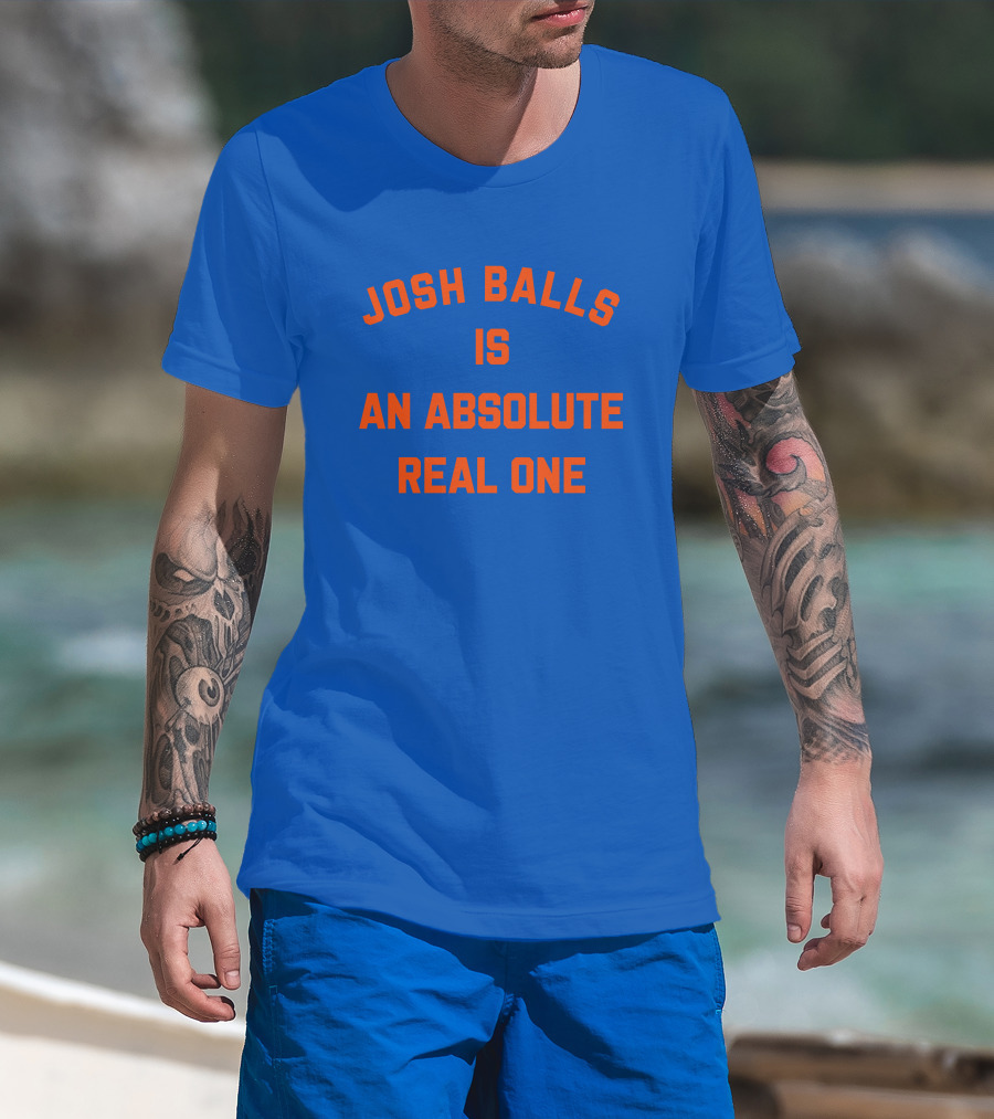 The Josh Balls Is An Absolute Real One T-shirt is designed for everyday wear and a consistent fit. Fabric is pre-shrunk ring-spun cotton with durable stitching. See the size chart below for exact measurements.
